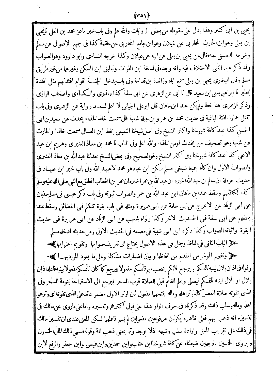 يحيى بن أبي كثير وَهَذَا يدل على سُقُوطه من بعض الرِّوَايَات وَالله أعلم وَفِي بَاب خبر مَاعِز مُحَمَّد بن الْعلي نَا يحيى بن يعلى وَهُوَ ابْن الْحَارِث الْمحَاربي عَن غيلَان وَهُوَ ابْن جَامع الْمحَاربي عَن عَلْقَمَة كَذَا فِي جَمِيع الْأُصُول عَن مُسلم وخرجه الدِّمَشْقِي عَنهُ فَقَالَ عَن يحيى بن يعلى عَن أَبِيه عَن غيلَان وَكَذَا خرجه النساءي وَأَبُو دَاوُود وَهُوَ الصَّوَاب وَقد ذكر عبد الْغَنِيّ الِاخْتِلَاف فِيهِ وَأَنه وجده فِي نُسْخَة ابْن الْفُرَات وَتَعْلِيق ابْن السكن وَغَيرهمَا من غير طَرِيق مُسلم وَقَالَ البُخَارِيّ يحيى بن يعلى سمع أَبَاهُ وزائدة بن قدامَة وَفِي بَاب يدْخل الْجنَّة أَقوام أفئدتهم مثل أَفْئِدَة الطير نَا إِبْرَاهِيم يَعْنِي ابْن سعيد قَالَ نَا أبي عَن الزُّهْرِيّ عَن أبي سَلمَة كَذَا للعذري وَالْكسَائِيّ وَأَصْحَاب الرَّازِيّ وَذكر الزُّهْرِيّ هُنَا خطأ وَلم يكن عِنْد ابْن ماهان قَالَ أَبُو عَليّ الجياني لَا أعلم لسعد رِوَايَة عَن الزُّهْرِيّ وَفِي بَاب تقتل عمارا الفئة الباغية فِي حَدِيث مُحَمَّد بن عَمْرو بن بن جبلة شُعْبَة قَالَ سَمِعت خَالِد الْحذاء يحدث عَن سعيد بن أبي الْحسن كَذَا عِنْد كَافَّة شُيُوخنَا وَأكْثر النّسخ وَفِي أصل شَيخنَا التَّمِيمِي بِخَط ابْن الْعَسَّال سَمِعت خَالِدا والْحَارث عَن شُعْبَة وَهُوَ تَصْحِيف من يحدث أَو من الْحذاء وَالله أعلم وَفِي الْبَاب نَا مُحَمَّد بن معَاذ الْعَنْبَري وهريم ابْن عبد الْأَعْلَى كَذَا عِنْد كَافَّة شُيُوخنَا وي أَكثر النّسخ وَهُوَ الصَّحِيح وَفِي بعض النّسخ حَدثنَا عبد الله بن معَاذ الْعَنْبَري وَالصَّوَاب الأول وَإِن كَانَا جَمِيعًا شَيْخي مُسلم لَكِن ابْن عباد هُوَ مُحَمَّد لَا عبيد الله وَفِي بَاب خبر ابْن صياد فِي حَدِيث حَرْمَلَة أَن سَالم بن عبد الله أخبرهُ أَن عبدا لله بن عمر أخبرهُ أَن عمر بن الْخطاب انْطلق مَعَ النَّبِي (صلى الله عَلَيْهِ وَسلم) كَذَا لكافتهم وَسقط عِنْد ابْن ماهان ابْن عبد الله بن عمر وَالصَّوَاب ثُبُوته وَفِي بَاب ذكر عِيسَى فِي مُسلم سُفْيَان عَن أبي الزِّنَاد عَن الْأَعْرَج عَن أبي سَلمَة عَن أبي هُرَيْرَة وَمثله فِي بَاب بقرة تَتَكَلَّم فِي الْفَضَائِل وَسقط عِنْد بَعضهم عَن أبي سَلمَة فِي الحَدِيث الآخر وَكَذَا رَوَاهُ شُعَيْب عَن أبي الزِّنَاد عَن أبي هُرَيْرَة فِي حَدِيث الْبَقَرَة وإثباته الصَّوَاب وَكَذَا ذكره ابْن أبي شيبَة فِي مُصَنفه فِي الحَدِيث الأول وَمن حَدِيثه أدخلهُ مُسلم