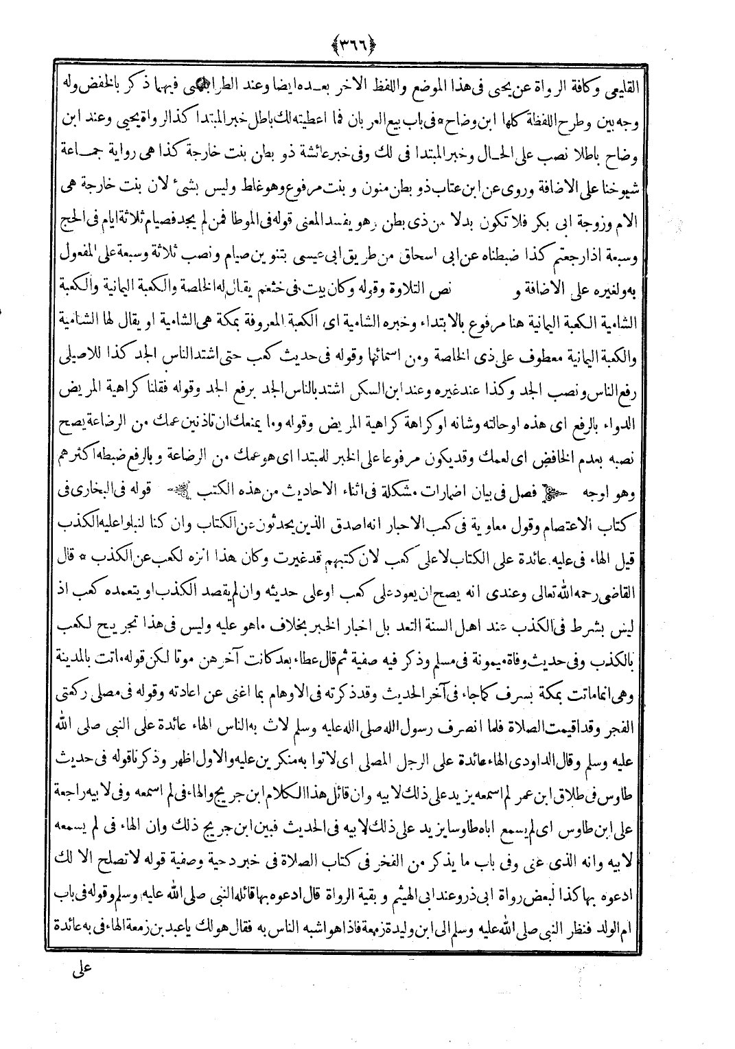 قَالَ القَاضِي رَحمَه الله تَعَالَى وَعِنْدِي أَنه يَصح أَن يعود على كَعْب أَو على حَدِيثه وَإِن لم يقْصد الْكَذِب أَو يتعمده كَعْب إِذْ لَيْسَ بِشَرْط فِي الْكَذِب عِنْد أهل السّنة التعد بل إِخْبَار الْخَبَر بِخِلَاف مَا هُوَ عَلَيْهِ وَلَيْسَ فِي هَذَا تجريح لكعب بِالْكَذِبِ وَفِي حَدِيث وَفَاة مَيْمُونَة فِي مُسلم وَذكر فِيهِ صَفِيَّة ثمَّ قَالَ عَطاء بعد كَانَت آخِرهنَّ موتا لَكِن قَوْله مَاتَت بِالْمَدِينَةِ وَهِي إِنَّمَا مَاتَت بِمَكَّة بسرف كَمَا جَاءَ فِي آخر الحَدِيث وَقد ذكرته فِي الأوهام بِمَا أغْنى عَن إِعَادَته وَقَوله فِي مصلى رَكْعَتي الْفجْر وَقد أُقِيمَت الصَّلَاة فَلَمَّا انْصَرف رَسُول الله (صلى الله عَلَيْهِ وَسلم) لاث بِهِ النَّاس الْهَاء عَائِدَة على النَّبِي (صلى الله عَلَيْهِ وَسلم) وَقَالَ الدَّاودِيّ الْهَاء عَائِدَة على الرجل الْمُصَلِّي أَي لأتوا بِهِ منكرين عَلَيْهِ وَالْأول أظهر وَذكرنَا قَوْله فِي حَدِيث طَاوس فِي طَلَاق ابْن عمر لم أسمعهُ يزِيد على ذَلِك لِأَبِيهِ وَإِن قَائِل هَذَا الْكَلَام ابْن جريج وَالْهَاء فِي لم أسمعهُ وَفِي لِأَبِيهِ رَاجِعَة على ابْن طَاوس أَي لم يسمع أَبَاهُ طاوسا يزِيد على ذَلِك لِأَبِيهِ فِي الحَدِيث فَبين ابْن جريج ذَلِك وَإِن الْهَاء فِي لم يسمعهُ لِأَبِيهِ وَإنَّهُ الَّذِي عَنى وَفِي بَاب مَا يذكر من الْفَخر فِي كتاب الصَّلَاة فِي خبر دحْيَة وَصفِيَّة قَوْله لَا تصلح إِلَّا لَك أَدْعُوهُ بهَا كَذَا لبَعض رُوَاة أبي ذَر وَعند أبي الْهَيْثَم وَبَقِيَّة الروَاة قَالَ ادعوهُ بهَا قَائِله النَّبِي (صلى الله عَلَيْهِ وَسلم) وَقَوله فِي بَاب أم الْوَلَد فَنظر النَّبِي (صلى الله عَلَيْهِ وَسلم) إِلَى ابْن وليدة زَمعَة فَإِذا هُوَ أشبه النَّاس بِهِ فَقَالَ هُوَ لَك يَا عبد بن زَمعَة الْهَاء فِي بِهِ عَائِدَة