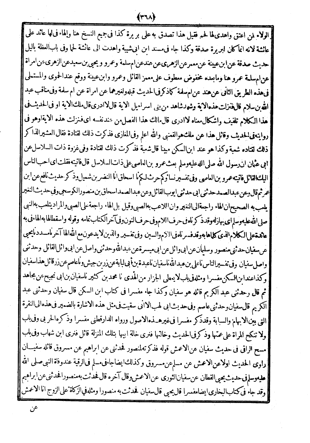 الْوَلَاء لمن أعتق وَأهْدى لَهَا لحم فَقيل هَذَا تصدق بِهِ على بَرِيرَة كَذَا فِي جَمِيع النّسخ هُنَا وَالْهَاء فِي لَهَا عَائِد على عَائِشَة لِأَنَّهُ إِنَّمَا كَانَ لبريرة صَدَقَة وَكَذَا جَاءَ فِي مُسْند ابْن أبي شيبَة وأهدت إِلَى عَائِشَة لَحْمًا وَفِي بَاب العظة باليل حَدِيث صَدَقَة عَن ابْن عُيَيْنَة عَن معمر عَن الزُّهْرِيّ عَن هِنْد عَن أم سَلمَة وَعَمْرو وَيحيى بن سعيد عَن الزُّهْرِيّ عَن امْرَأَة عَن أم سَلمَة عَمْرو هُنَا وَمَا بعده مخفوض مَعْطُوف على معمر الْقَائِل وَعَمْرو وَابْن عُيَيْنَة وَوَقع عِنْد الْحَمَوِيّ وَالْمُسْتَمْلِي فِي هَذِه الطَّرِيق الثَّانِي عَن هِنْد عَن أم سَلمَة كَمَا ذكر فِي الحَدِيث قبله ولغيرهما عَن امْرَأَة عَن أم سَلمَة وَفِي مَنَاقِب عبد الله بن سَلام قَالَ فَنزلت هَذِه الْآيَة وَشهد شَاهد من بني إِسْرَائِيل الْآيَة قَالَ لَا أَدْرِي قَالَ ملك الْآيَة أَو فِي الحَدِيث فِي هَذَا الْكَلَام تلفيف وإشكال مَعْنَاهُ لَا أَدْرِي قَالَ مَالك هَذَا الْفَصْل من عِنْد نَفسه أَي فَنزلت هَذِه الْآيَة أَو هُوَ فِي رِوَايَته فِي الحَدِيث وَقَائِل هَذَا عَن ملك هُوَ القعْنبِي وَالله أعلم وَفِي الْمَغَازِي فَذكرت ذَلِك لِقَتَادَة فَقَالَ العشير الذاكر ذَلِك لِقَتَادَة شُعْبَة وَكَذَا هُوَ عِنْد ابْن السكن مُبينًا قَالَ شُعْبَة فَذكرت ذَلِك لِقَتَادَة وَفِي غَزْوَة ذَات السلَاسِل عَن أبي عُثْمَان أَن رَسُول الله (صلى الله عَلَيْهِ وَسلم) بعث عَمْرو بن العَاصِي على ذَات السلَاسِل قَالَ فَأَتَيْته فَقلت أَي أحب النَّاس إِلَيْك الْقَائِل فاتيته عَمْرو بن العَاصِي وَفِي تَفْسِير نِسَاؤُكُمْ حرث لكم نَا إِسْحَاق أَنا النَّضر بن شُمَيْل وَذكر حَدِيث نَافِع عَن ابْن عمر ثمَّ قَالَ وَعَن عبد الصَّمد حَدثنِي أبي حَدثنِي أَيُّوب الْقَائِل وَعَن عبد الصَّمد إِسْحَاق بن مَنْصُور الكوسجي وَفِي حَدِيث النغير يلْعَب بِهِ الصَّحِيح أَن الْهَاء رَاجِعَة إِلَى النغير وَأَن اللاعب بِهِ الصَّبِي وَقيل بل الْهَاء رَاجِعَة على الصَّبِي وَالْمرَاد يتلعب بِهِ النَّبِي (صلى الله عَلَيْهِ وَسلم) أَي يهازله وَقد ذَكرْنَاهُ فِي حرف اللَّام وَفِي حرف النُّون وَفِي آخر الْكتاب تَمَامه وَقَوله وإسقطا لَهَا بِهِ الْهَاء فِي بِهِ عَائِدَة على الْكَلَام الَّذِي كلماها بِهِ وَقد فسرناه فِي اللَّام وَالسِّين وَفِي تَفْسِير وَالَّذين لَا يدعونَ مَعَ الله إلاها آخر نَا مُسَدّد نَا يحيى عَن سُفْيَان حَدثنِي مَنْصُور وَسليمَان عَن أبي وَائِل عَن أبي ميسرَة عَن عبد الله وحَدثني وَاصل عَن أبي وَائِل الْقَائِل وحَدثني وأصل سُفْيَان وَفِي تَفْسِير النَّاس نَا عَليّ بن عبد الله نَا سُفْيَان نَا عَبدة بن أبي لبَابَة عَن زر بن جَيش ونا عَاصِم عَن زر قَائِل هَذَا سُفْيَان وَكَذَا عِنْد ابْن السكن مُفَسرًا وَمثله فِي بَاب لَا يُعْطي الجزار من الْهَدْي نَا مُحَمَّد بن كثير نَا سُفْيَان بن أبي نجيح عَن مُجَاهِد ثمَّ قَالَ وحَدثني عبد الْكَرِيم قَائِله هُوَ سُفْيَان وَكَذَا جَاءَ مُفَسرًا فِي كتاب ابْن السكن قَالَ سُفْيَان وحَدثني عبد الْكَرِيم قَالَ سُفْيَان وحَدثني عَاصِم وَفِي حَدِيث أبي لَهب إِلَّا أَنِّي سقيت فِي مثل هَذِه الْإِشَارَة بالضمير فِي هَذِه إِلَى النقرة الَّتِي بَين الْإِبْهَام والسبابة وَقد ذكر مُفَسرًا فِي غير هَذِه الْأُصُول وَرَوَاهُ الدَّارَقُطْنِيّ مُفَسرًا وَذكره الْحَرْبِيّ وَفِي بَاب وَلَا تنْكح الْمَرْأَة على عَمَّتهَا وَذكر فِي الحَدِيث وخالتها فنرى خَالَة أَبِيهَا بِتِلْكَ الْمنزلَة قَائِل فنرى ابْن شهَاب وَفِي بَاب مسح الراقي فِي حَدِيث سُفْيَان عَن الْأَعْمَش قَوْله فَذَكرته لمنصور فَحَدثني عَن إِبْرَاهِيم عَن مَسْرُوق قَائِله سُفْيَان رَاوِي الحَدِيث أَولا عَن الْأَعْمَش عَن مُسلم عَن مَسْر