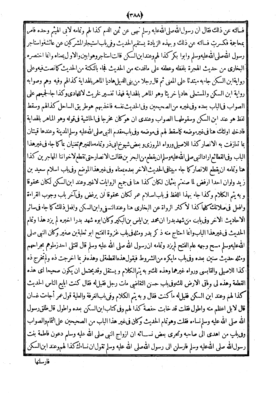 فَسَأَلته عَن ذَلِك فَقَالَ أَن رَسُول الله (صلى الله عَلَيْهِ وَسلم) نهى عَن ثمن الدَّم كَذَا لَهُم وَتَمَامه لأبي الْهَيْثَم وَحده فَأمر بمحاجمة فَكسرت فَسَأَلته عَن ذَلِك وبهذه الزِّيَادَة يَسْتَقِيم الحَدِيث وَفِي بَاب استيجار الْمُشْركين عَن عَائِشَة واستأجر رَسُول الله (صلى الله عَلَيْهِ وَسلم) وَأَبُو بكر كَذَا لَهُم وَعند ابْن السكن قَالَت اسْتَأْجر وَهُوَ أبين وَالْأول بِمَعْنَاهُ وَإِنَّمَا اخْتَصَرَهُ البُخَارِيّ من حَدِيث الْهِجْرَة بِلَفْظِهِ وَعطفه على مَا قَدمته من الحَدِيث فجَاء بالنكتة من الحَدِيث كَمَا نصت فِيهِ وعَلى رِوَايَة ابْن السكن جَاءَ بِهِ مبتدئا على الْمَعْنى ثمَّ قَالَ رجلا من بني الديل هاديا الماهر بالهداية كَذَا لَهُم وَفِيه وهم وَصَوَابه رِوَايَة ابْن السكن وَالْمُسْتَمْلِي هاديا خريثا وَهُوَ الماهر بالهداية فَهَذَا تَفْسِير لخريث لَا للهادي وَكَذَا جَاءَ لجميعهم على الصَّوَاب فِي الْبَاب بعده وَفِي غَيره من الصَّحِيحَيْنِ وَفِي الحَدِيث نَفسه فَأخذ بهم هُوَ طَرِيق السَّاحِل كَذَا لَهُم وَسقط لفظ هُوَ عِنْد ابْن السكن وسقوطها الصَّوَاب وَعِنْدِي أَن هُوَ كَانَ مخرجا فِي الْحَاشِيَة فِي قَوْله وَهُوَ الماهر بالهداية فَأدْخلهُ أُولَئِكَ هُنَا فِي غير مَوْضِعه كَمَا سقط لَهُم فِي مَوْضِعه وَفِي بَاب مقدم النَّبِي (صلى الله عَلَيْهِ وَسلم) الْمَدِينَة وَعِنْدهَا قينتان بِمَا تعازفت بِهِ الْأَنْصَار كَذَا للأصيلي وَرَوَاهُ الْمروزِي وَبَعض شُيُوخ أبي ذَر وَتَمَامه مَا لغَيرهم تُغنيَانِ بِمَا كَمَا جَاءَ فِي غير هَذَا الْبَاب وَفِي القطائع أَرَادَ النَّبِي (صلى الله عَلَيْهِ وَسلم) أَن يقطع من الْبَحْرين فَقَالَت الْأَنْصَار حَتَّى تقطع لأخواننا الْمُهَاجِرين كَذَا هُنَا وَتَمَامه أَن يقطع للْأَنْصَار كَمَا جَاءَ مُبينًا فِي الحَدِيث الآخر بعده بِمَعْنَاهُ وَفِي غير هَذَا الْموضع وَفِي بَاب إِسْلَام سعيد بن زيد وَلَو أَن أحدا أرفض لما صَنَعْتُم بعثمان لَكَانَ كَذَا هُنَا فِي جَمِيع الرِّوَايَات لَا غير وَعند ابْن السكن لَكَانَ محقوقا وَبِه يتم الْكَلَام وَكَذَا جَاءَ بِهَذَا اللَّفْظ فِي بَاب إِسْلَام عمر لَكَانَ محقوقا أَن يرفض وَفِي آخر بَاب وجوب الْقِرَاءَة وَافْعل فِي صَلَاتك كلهَا كَذَا لأكْثر الروَاة عَن البُخَارِيّ هُنَا وَعند النَّسَفِيّ وَابْن السكن وَافْعل ذَلِك كَمَا جَاءَ فِي سَائِر الْأَحَادِيث الْأُخَر وَفِي بَاب من شهد بَدْرًا أَن مُحَمَّد بن أياس بن البكير وَكَانَ أَبوهُ شهد بَدْرًا أخبرهُ لم يزدْ هَذَا وَتَمام الحَدِيث فِي غير هَذَا الْبَاب وَإِنَّمَا احْتَاجَ مِنْهُ ذكر بدر وَمثله فِي بَاب غَزْوَة الْفَتْح أَبُو ثَعْلَبَة بن صفير وَكَانَ النَّبِي (صلى الله عَلَيْهِ وَسلم) مسح وَجهه عَام الْفَتْح لم يزدْ وَتَمَامه أَن رَسُول الله (صلى الله عَلَيْهِ وَسلم) قَالَ لقتلى أحد زملوهم بجراحهم وَمثله حَدِيث سِنِين بعده وَفِي بَاب مَا يكره من الشُّرُوط فَيَقُول هَذِه الْقطعَة لي وَهَذِه فَرُبمَا أخرجت ذه وَلم تخرج ذه كَذَا للأصيلي والقابسي وَرَوَاهُ غَيرهمَا وَهَذِه لَك وَبِه يتم الْكَلَام ويستقل وَقد يحْتَمل أَن يكون صَحِيحا أَي هَذِه الْقطعَة وَهَذِه لي وَبَاقِي الأَرْض لَك وَفِي بَاب حسن التقاضي مَاتَ رجل فَقيل لَهُ فَقَالَ كنت أبايع النَّاس الحَدِيث كَذَا لَهُم وَعند ابْن السكن فَقيل لَهُ مَا كنت فَقَالَ وَبِه يتم الْكَلَام وَفِي بَاب الغرفة والعلية قَول عمر أجاءت غَسَّان قَالَ لَا بل أعظم مِنْهُ وأطول فَقلت قد خابت حَفْصَة كَذَا لَهُم وَفِي كتاب ابْن السكن بعده وأطول قَالَ طلق رَسُول الله (صلى الله عَلَيْهِ وَسلم) نِسَاءَهُ فَقلت وَهُوَ تَمام الحَدِيث وَكَانَ فِي غير هَذَا الْبَاب من الصَّحِيحَيْنِ على التَّمام وَالصَّوَاب وَفِي بَاب من أهْدى إِلَى صَاحبه و