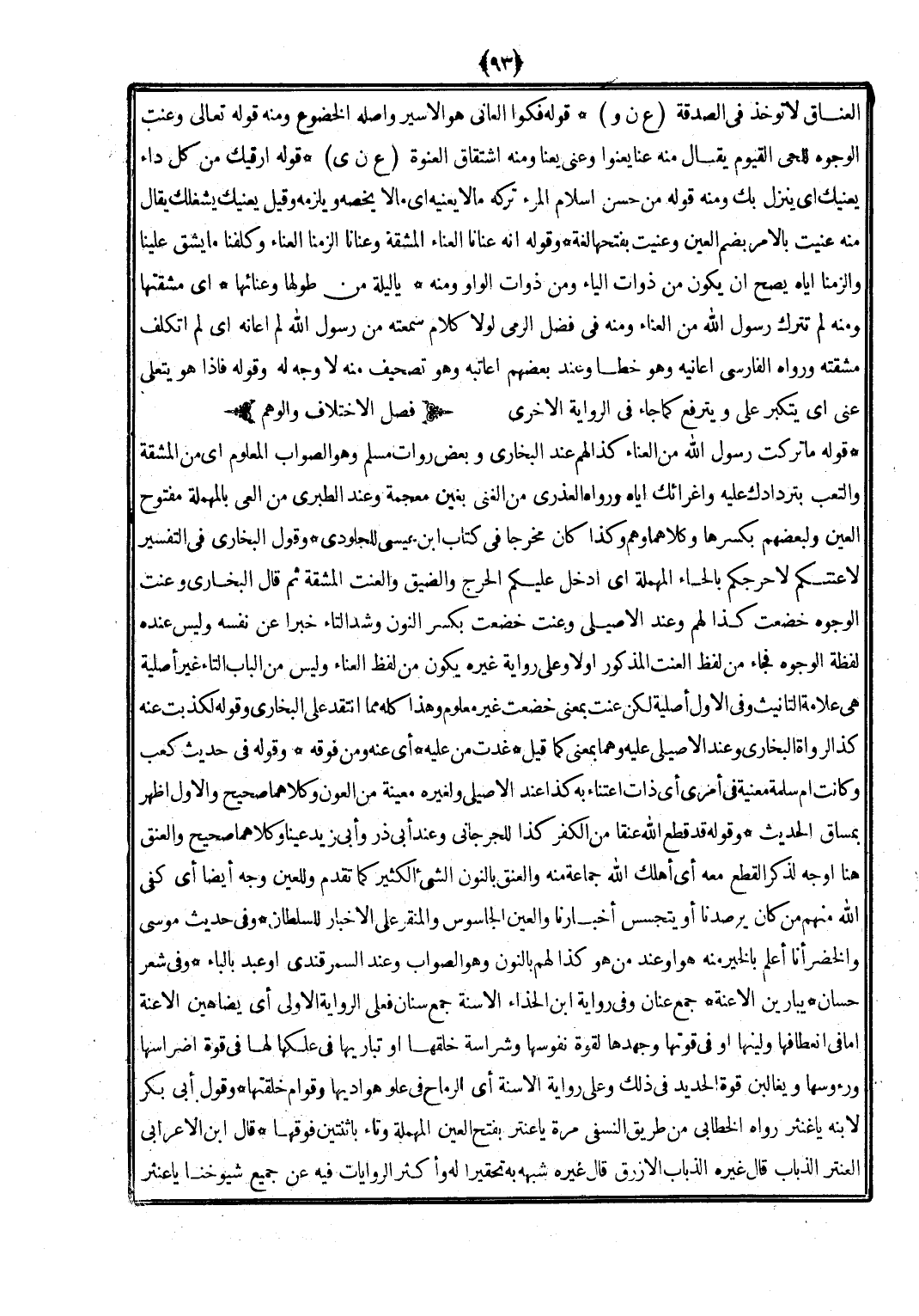 وَقَوله قد قطع الله عنقًا من الْكفْر كَذَا للجرجاني وَعند أبي ذَر وَأبي زيد عينا وَكِلَاهُمَا صَحِيح والعنق هُنَا أوجه لذكر الْقطع مَعَه أَي أهلك الله جمَاعَة مِنْهُ والعنق بالنُّون الشَّيْء الْكثير كَمَا تقدم وللعين وَجه أَيْضا أَي كفى الله مِنْهُم من كَانَ يرصدنا أَو يتجسس أخبارنا وَالْعين الجاسوس والمنقر على الْأَخْبَار للسُّلْطَان