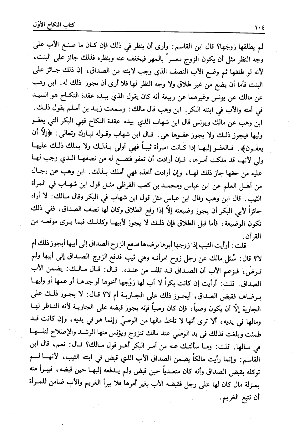 قُلْتُ: وَمَا سَأَلْتُك عَنْهُ مِنْ أَمْرِ الْبِكْرِ أَهُوَ قَوْلُ مَالِكٍ؟