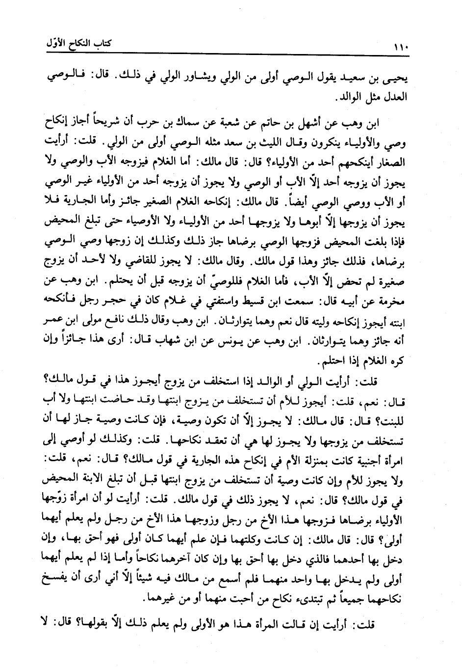 قُلْتُ: أَرَأَيْت الصِّغَارَ أَيُنْكِحُهُمْ أَحَدٌ مِنْ الْأَوْلِيَاءِ؟ قَالَ: قَالَ مَالِكٌ: أَمَّا الْغُلَامُ فَيُزَوِّجُهُ الْأَبُ وَالْوَصِيُّ وَلَا يَجُوزُ أَنْ يُزَوِّجَهُ أَحَدٌ إلَّا الْأَبُ أَوْ الْوَصِيُّ وَلَا يَجُوزُ أَنْ يُزَوِّجَهُ أَحَدٌ مِنْ الْأَوْلِيَاءِ غَيْرَ الْوَصِيِّ أَوْ الْأَبِ وَوَصِيِّ الْوَصِيِّ أَيْضًا قَالَ مَالِكٌ: إنْكَاحُهُ الْغُلَامَ الصَّغِيرَ جَائِزٌ وَأَمَّا الْجَارِيَةُ فَلَا يَجُوزُ أَنْ يُزَوِّجَهَا إلَّا أَبُوهَا وَلَا يُزَوِّجُهَا أَحَدٌ مِنْ الْأَوْلِيَاءِ وَلَا الْأَوْصِيَاءِ حَتَّى تَبْلُغَ الْمَحِيضَ فَإِذَا بَلَغَتْ الْمَحِيضَ فَزَوَّجَهَا الْوَصِيُّ بِرِضَاهَا جَازَ ذَلِكَ وَكَذَلِكَ إنْ زَوَّجَهَا وَصِيُّ الْوَصِيِّ بِرِضَاهَا، فَذَلِكَ جَائِزٌ وَهَذَا قَوْلُ مَالِكٍ وَقَالَ مَالِكٌ: لَا يَجُوزُ لِلْقَاضِي وَلَا لِأَحَدٍ أَنْ يُزَوِّجَ صَغِيرَةً لَمْ تَحِضْ إلَّا الْأَبُ، فَأَمَّا الْغُلَامُ فَلِلْوَصِيِّ أَنْ يُزَوِّجَهُ قَبْلَ أَنْ يَحْتَلِمَ ابْنُ وَهْبٍ عَنْ مَخْرَمَةَ عَنْ أَبِيهِ قَالَ: سَمِعْت ابْنَ قُسَيْطٍ وَاسْتُفْتِيَ فِي غُلَامٍ كَانَ فِي حِجْرِ رَجُلٍ فَأَنْكَحَهُ ابْنَتَهُ أَيَجُوزُ إنْكَاحُهُ وَلِيَّتَهُ؟