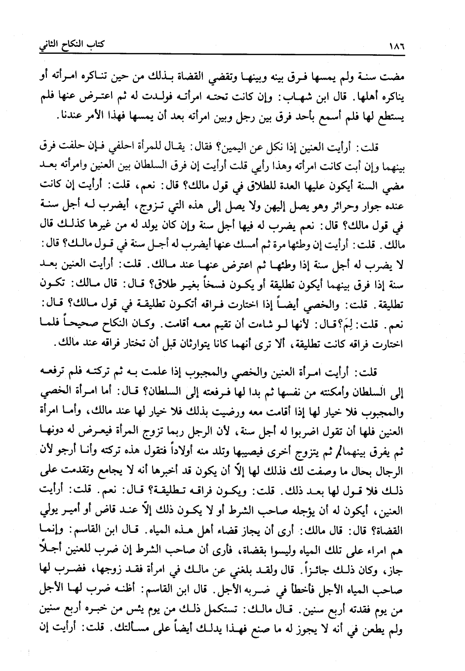 قُلْتُ أَرَأَيْتَ إنْ فَرَّقَ السُّلْطَانُ بَيْنَ الْعِنِّينِ وَامْرَأَتِهِ بَعْدَ مُضِيِّ السَّنَةِ أَيَكُونُ عَلَيْهَا الْعِدَّةُ لِلطَّلَاقِ فِي قَوْلِ مَالِكٍ؟