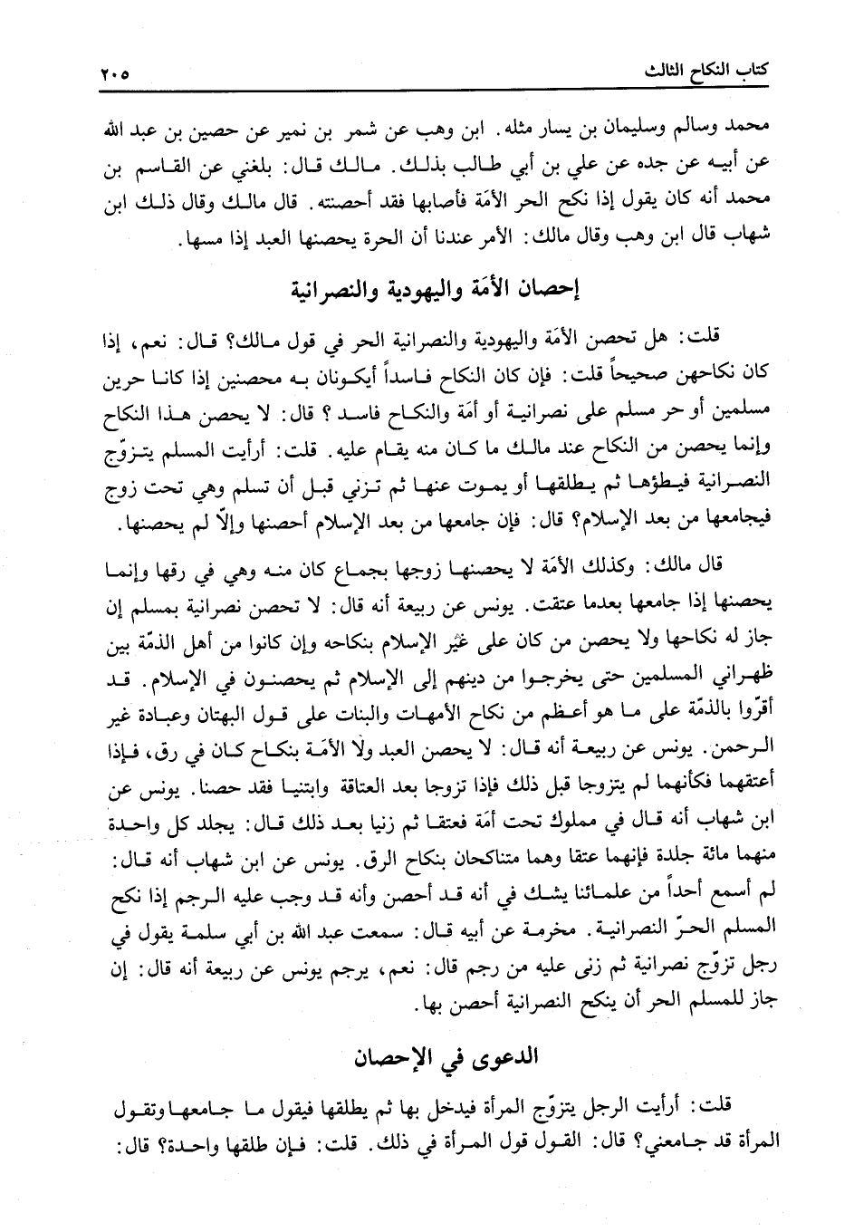 ِ قَالَ: هَلْ تُحْصِنُ الْأَمَةُ وَالْيَهُودِيَّةُ وَالنَّصْرَانِيَّة الْحُرَّ فِي قَوْلِ مَالِكٍ؟
