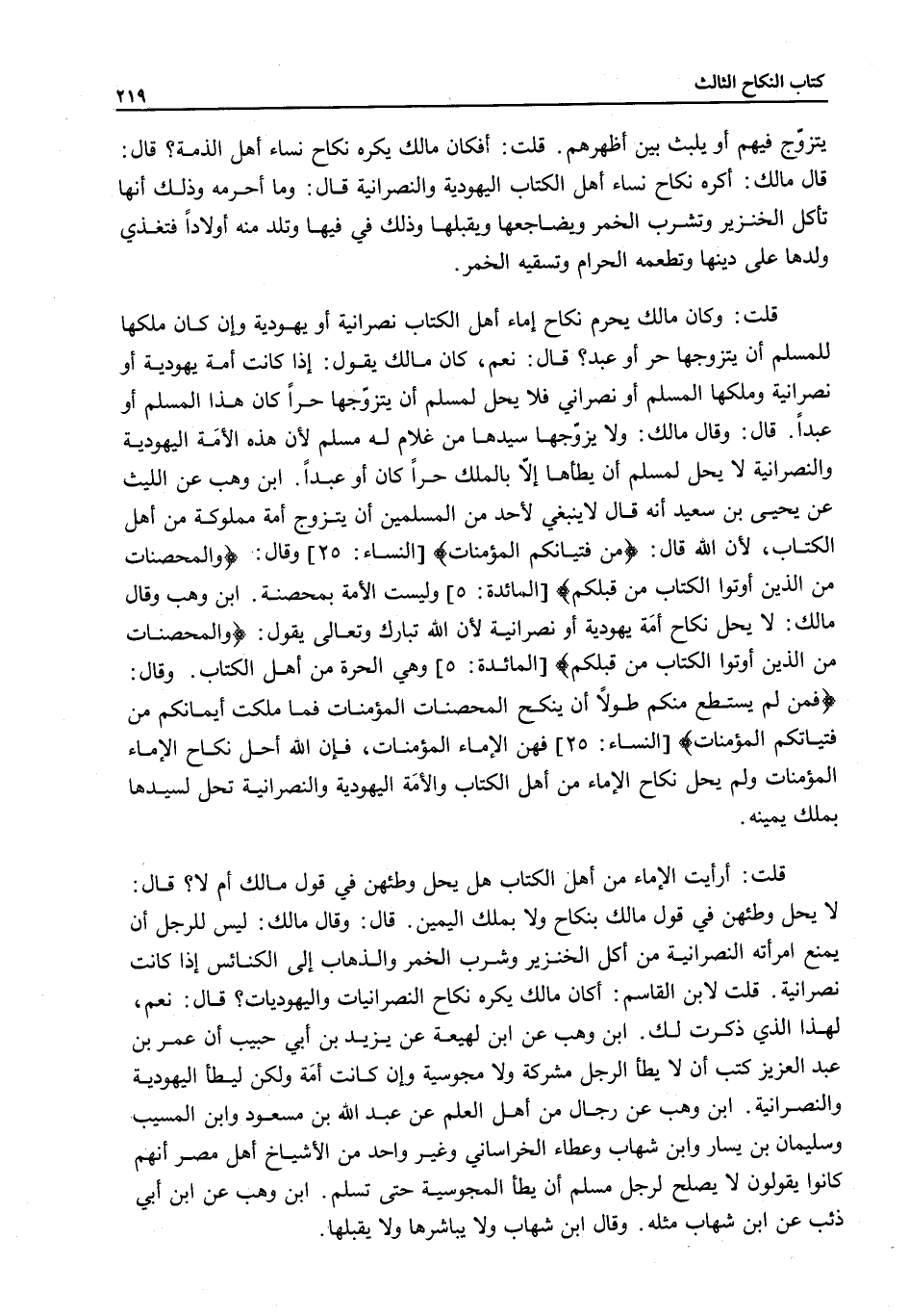 قُلْتُ لِابْنِ الْقَاسِمِ: أَكَانَ مَالِكٌ يَكْرَهُ نِكَاحَ النَّصْرَانِيَّاتِ وَالْيَهُودِيَّاتِ؟