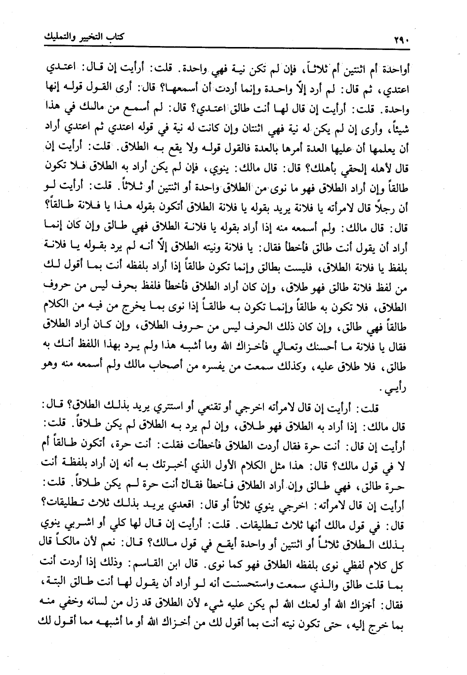 قُلْتُ: أَرَأَيْتَ إنْ قَالَ لِامْرَأَتِهِ: اُخْرُجِي يَنْوِي ثَلَاثًا أَوْ قَالَ: اُقْعُدِي يُرِيدُ بِذَلِكَ ثَلَاثَ تَطْلِيقَاتٍ؟