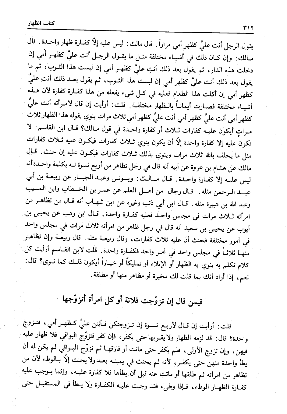 ُ قُلْتُ: أَرَأَيْتَ إنْ قَالَ لِأَرْبَعِ نِسْوَةٍ إنْ تَزَوَّجْتُكُنَّ فَأَنْتُنَّ عَلَيَّ كَظَهْرِ أُمِّي، فَتَزَوَّجَ وَاحِدَةً؟