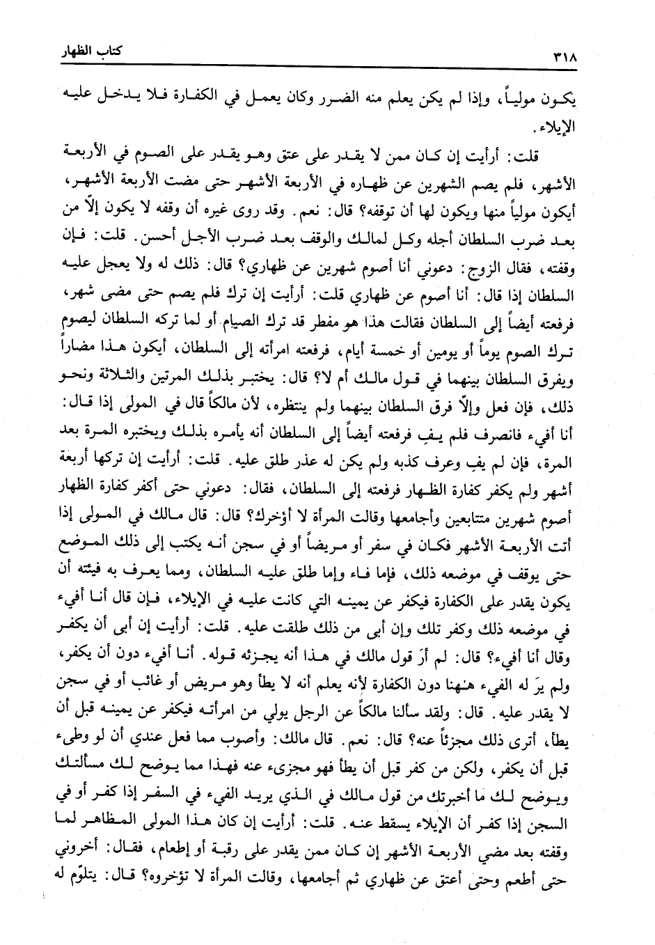 قُلْتُ: أَرَأَيْتَ إنْ تَرَكَهَا أَرْبَعَةَ أَشْهُرٍ وَلَمْ يُكَفِّرْ كَفَّارَةَ الظِّهَارِ فَرَفَعَتْهُ إلَى السُّلْطَانِ، فَقَالَ: دَعَوْنِي حَتَّى أُكَفِّرَ كَفَّارَةَ الظِّهَارِ أَصُومُ شَهْرَيْنِ مُتَتَابِعَيْنِ وَأُجَامِعُهَا وَقَالَتْ الْمَرْأَةُ لَا أُؤَخِّرُك؟
