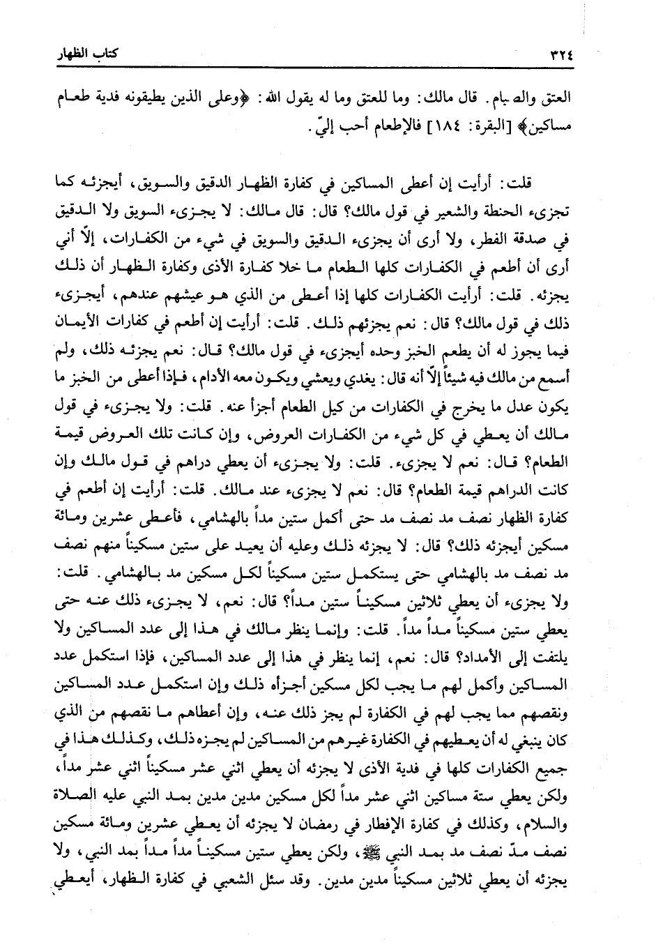 قُلْتُ: أَرَأَيْتَ إنْ أَعْطَى الْمَسَاكِينَ فِي كَفَّارَةِ الظِّهَارِ الدَّقِيقَ وَالسَّوِيقَ، أَيُجْزِئُهُ كَمَا تُجْزِئُ الْحِنْطَةُ وَالشَّعِيرُ فِي قَوْلِ مَالِكٍ؟