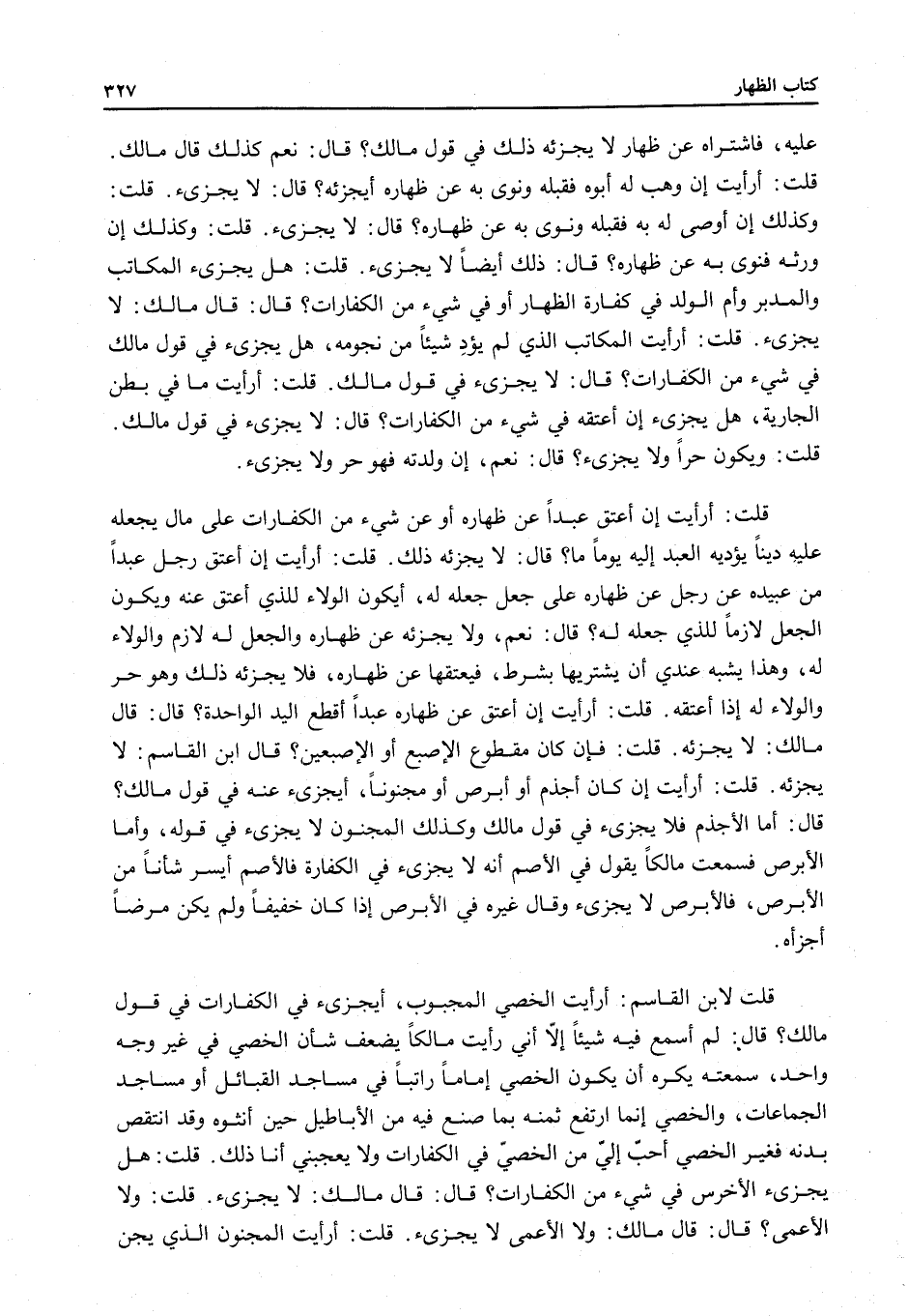 قُلْتُ: هَلْ يُجْزِئُ الْمُكَاتَبُ وَالْمُدَبَّرُ وَأُمُّ الْوَلَدِ فِي كَفَّارَةِ الظِّهَارِ أَوْ فِي شَيْءٍ مِنْ الْكَفَّارَاتِ؟