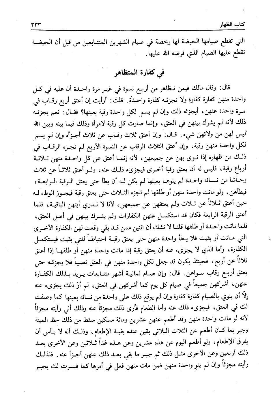 فِي كَفَّارَةِ الْمُتَظَاهِرِ