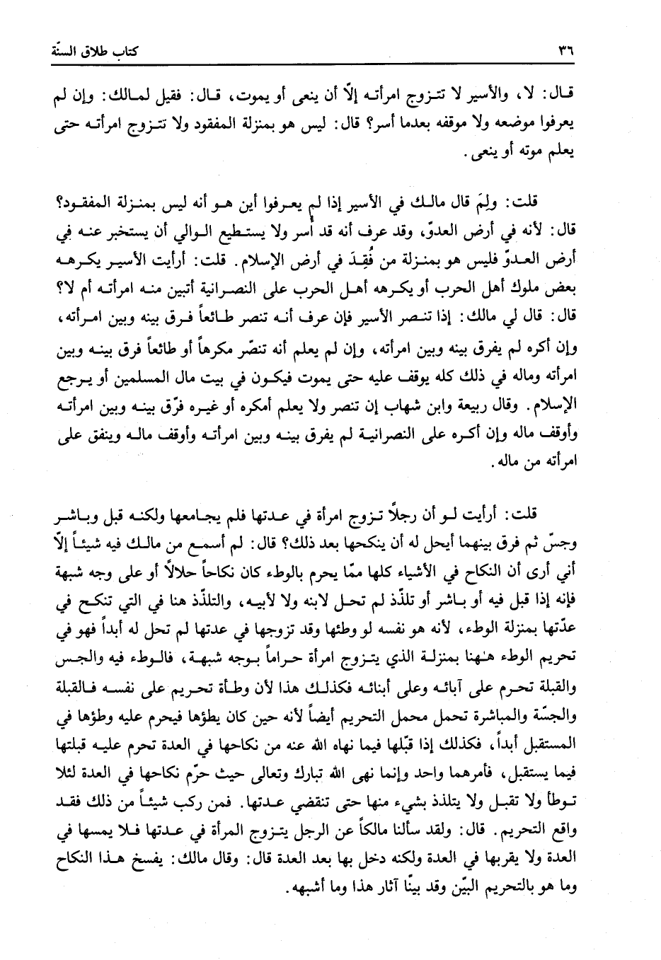 قَالَ: وَلَقَدْ سَأَلْنَا مَالِكًا عَنْ الرَّجُلِ يَتَزَوَّجُ الْمَرْأَةَ فِي عِدَّتِهَا فَلَا يَمَسُّهَا فِي الْعِدَّةِ وَلَا يَقْرَبُهَا فِي الْعِدَّةِ وَلَكِنَّهُ دَخَلَ بِهَا بَعْدَ الْعِدَّةِ قَالَ: وَقَالَ مَالِكٌ: يُفْسَخُ هَذَا النِّكَاحُ وَمَا هُوَ بِالتَّحْرِيمِ الْبَيِّنِ وَقَدْ بَيَّنَّا آثَارَ هَذَا وَمَا أَشْبَهَهُ.