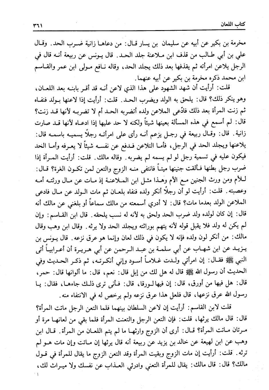 قَالَ: قَالَ مَالِكٌ: يُقَالُ لِلْمَرْأَةِ: الْتَعِنِي وَادْرَئِي الْعَذَابَ عَنْ نَفْسِكِ وَلَا مِيرَاثَ لَكِ،