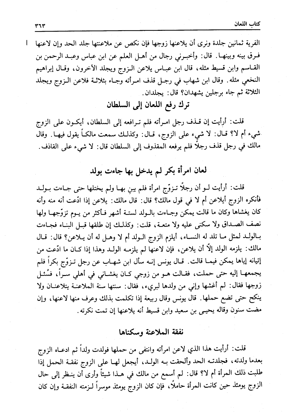 تَرَكَ رَفْعِ اللِّعَانِ إلَى السُّلْطَانِ قُلْتُ: أَرَأَيْتَ إنْ قَذَفَ رَجُلٌ امْرَأَتَهُ فَلَمْ تُرَافِعْهُ إلَى السُّلْطَانِ، أَيَكُونُ عَلَى الزَّوْجِ شَيْءٌ أَمْ لَا؟ قَالَ: لَا شَيْءَ عَلَى الزَّوْجِ، قَالَ: وَكَذَلِكَ سَمِعْتُ مَالِكًا يَقُولُ فِيهَا.