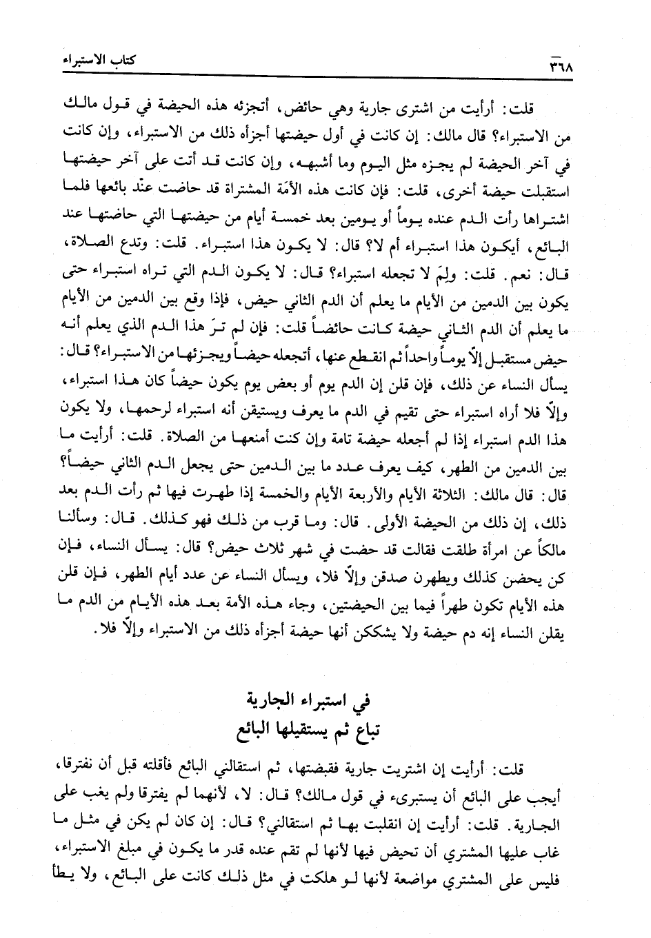 قُلْتُ: أَرَأَيْتَ مَنْ اشْتَرَى جَارِيَةً وَهِيَ حَائِضٌ، أَتُجْزِئُهُ هَذِهِ الْحَيْضَةُ فِي قَوْلِ مَالِكٍ مِنْ الِاسْتِبْرَاءِ؟