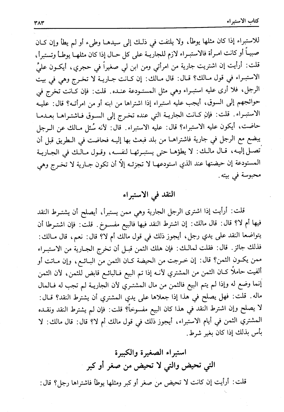 قُلْتُ: أَرَأَيْتَ إذَا اشْتَرَى الرَّجُلُ الْجَارِيَةَ وَهِيَ مِمَّنْ يُسْتَبْرَأُ، أَيَصْلُحُ أَنْ يُشْتَرَطَ النَّقْدُ فِيهَا أَمْ لَا؟
