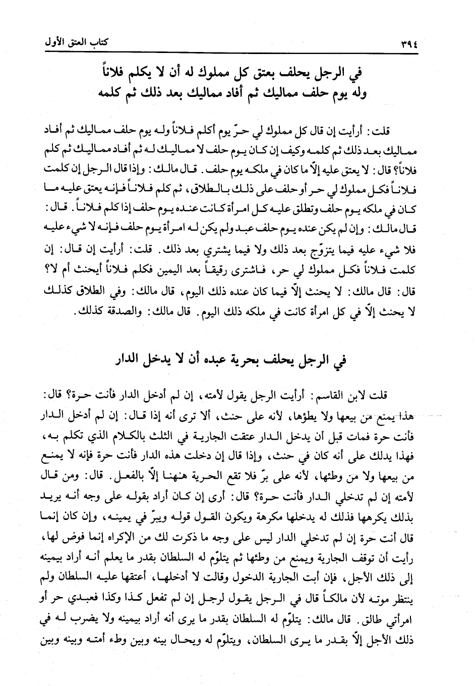 قُلْتُ: أَرَأَيْتَ إنْ قَالَ: كُلُّ مَمْلُوكٍ لِي حُرٌّ يَوْمَ أُكَلِّمُ فُلَانًا وَلَهُ يَوْمَ حَلَفَ مَمَالِيكُ ثُمَّ أَفَادَ مَمَالِيكَ بَعْدَ ذَلِكَ ثُمَّ كَلَّمَهُ وَكَيْفَ إنْ كَانَ يَوْمَ حَلَفَ لَا مَمَالِيكَ لَهُ ثُمَّ أَفَادَ مَمَالِيكَ ثُمَّ كَلَّمَ فُلَانًا؟ قَالَ: لَا يُعْتَقُ عَلَيْهِ إلَّا مَا كَانَ فِي مِلْكِهِ يَوْمَ حَلَفَ.