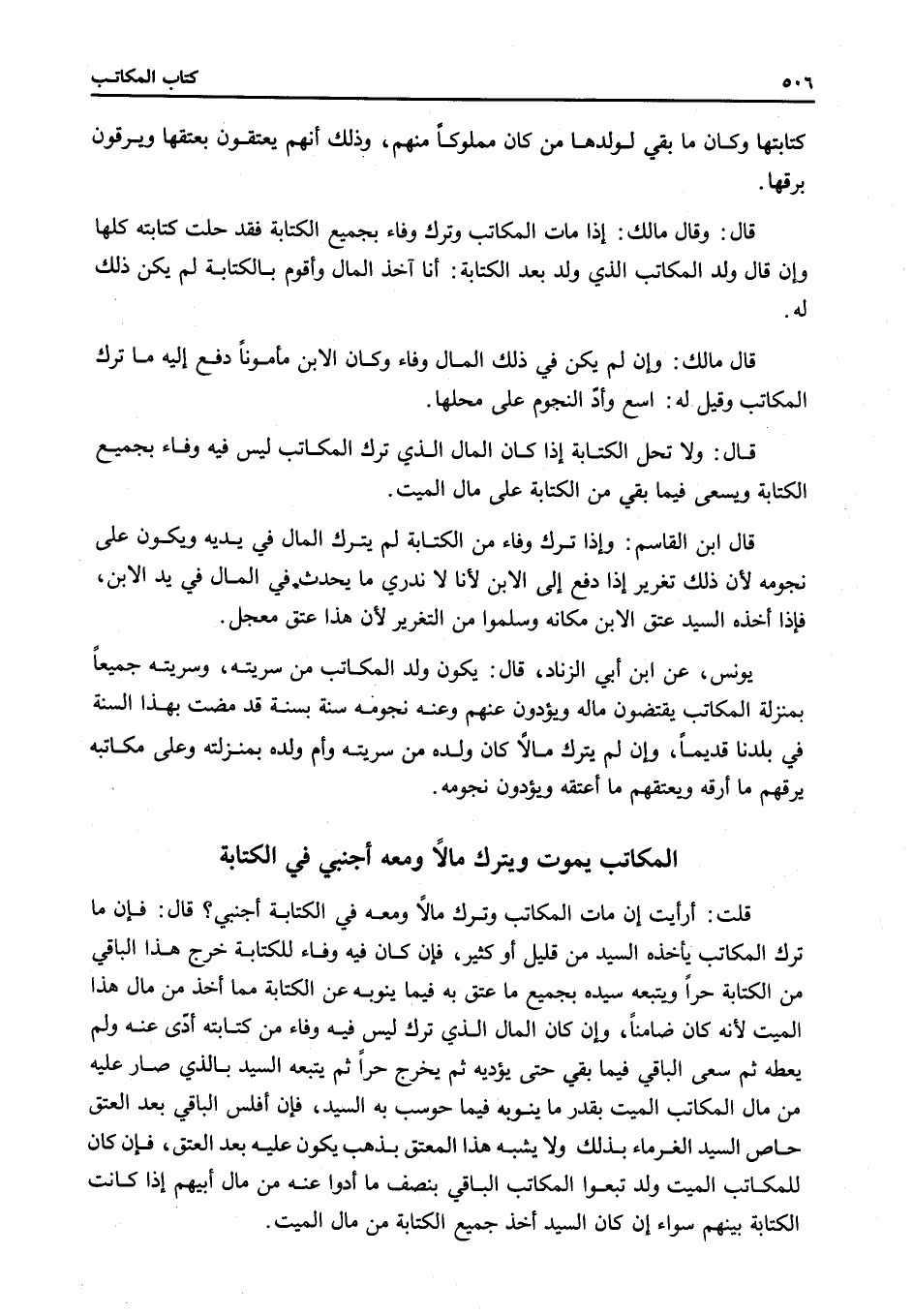 كِتَابَتِهَا وَكَانَ مَا بَقِيَ لِوَلَدِهَا مَنْ كَانَ مَمْلُوكًا مِنْهُمْ، وَذَلِكَ أَنَّهُمْ يُعْتَقُونَ بِعِتْقِهَا وَيُرَقُّونَ بِرِقِّهَا.