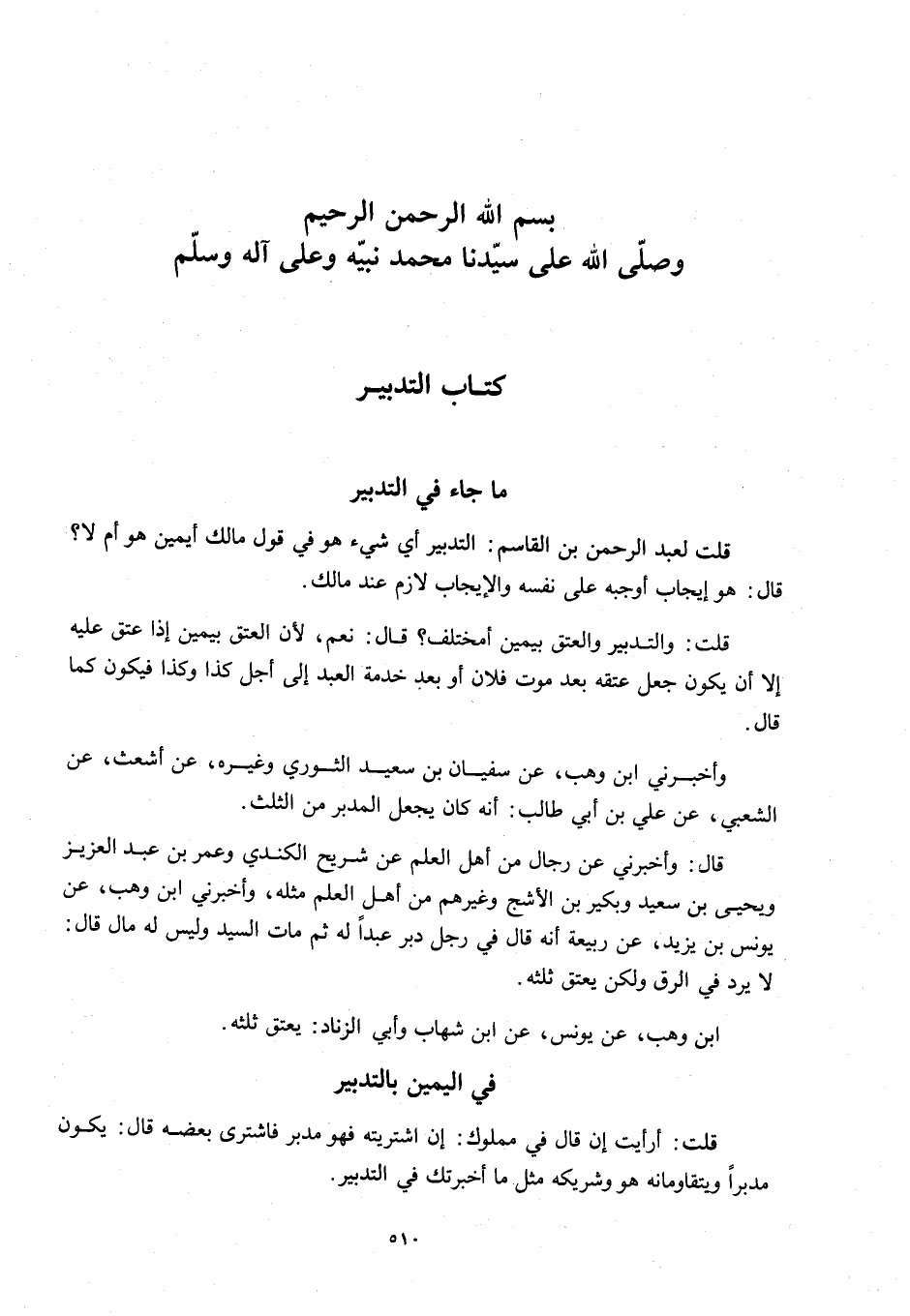 مَا جَاءَ فِي التَّدْبِيرِ قُلْتُ لِعَبْدِ الرَّحْمَنِ بْنِ الْقَاسِمِ: التَّدْبِيرُ أَيُّ شَيْءٍ هُوَ فِي قَوْلِ مَالِكٍ أَيَمِينٌ هُوَ أَمْ لَا؟