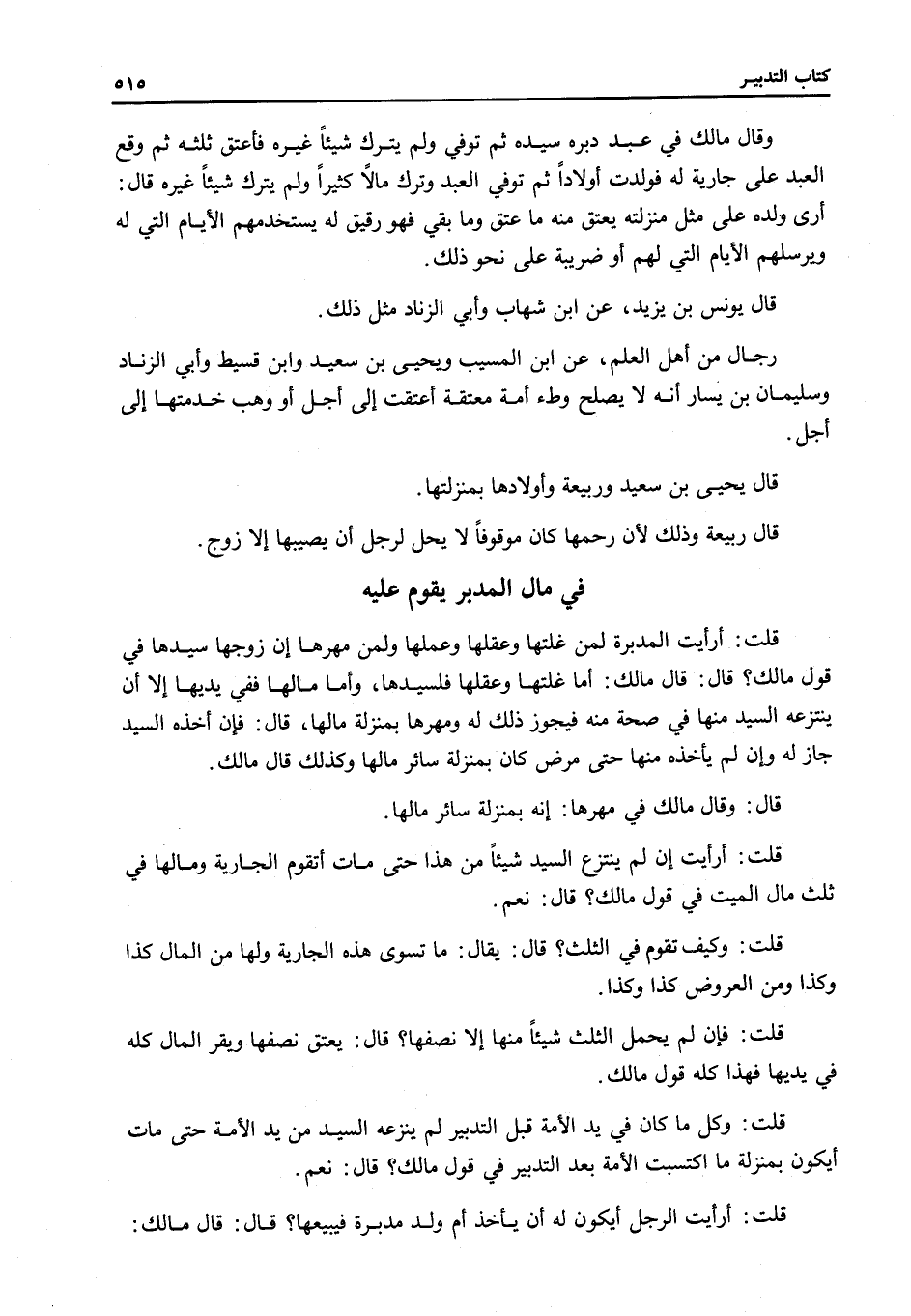فِي مَالِ الْمُدَبَّرِ يُقَوَّمُ عَلَيْهِ قُلْتُ: أَرَأَيْتَ الْمُدَبَّرَةَ لِمَنْ غَلَّتُهَا وَعَقْلُهَا وَعَمَلُهَا وَلِمَنْ مَهْرُهَا إنْ زَوَّجَهَا سَيِّدُهَا فِي قَوْلِ مَالِكٍ؟
