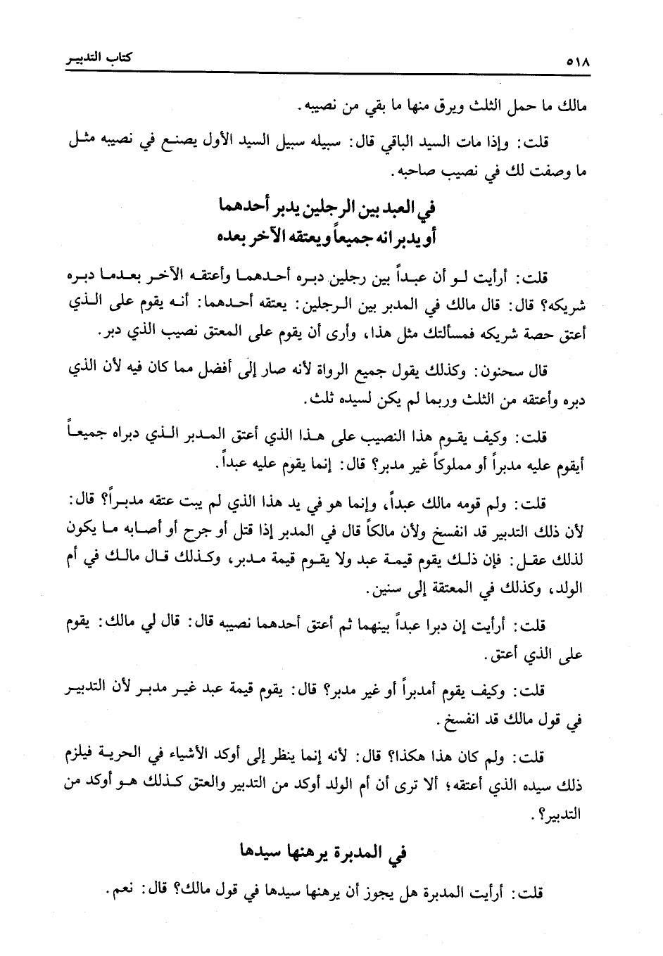 قُلْتُ: وَإِذَا مَاتَ السَّيِّدُ الْبَاقِي قَالَ: سَبِيلُهُ سَبِيلُ السَّيِّدِ الْأَوَّلِ يُصْنَعُ فِي نَصِيبِهِ مِثْلُ مَا وَصَفْتُ لَكَ فِي نَصِيبِ صَاحِبِهِ.