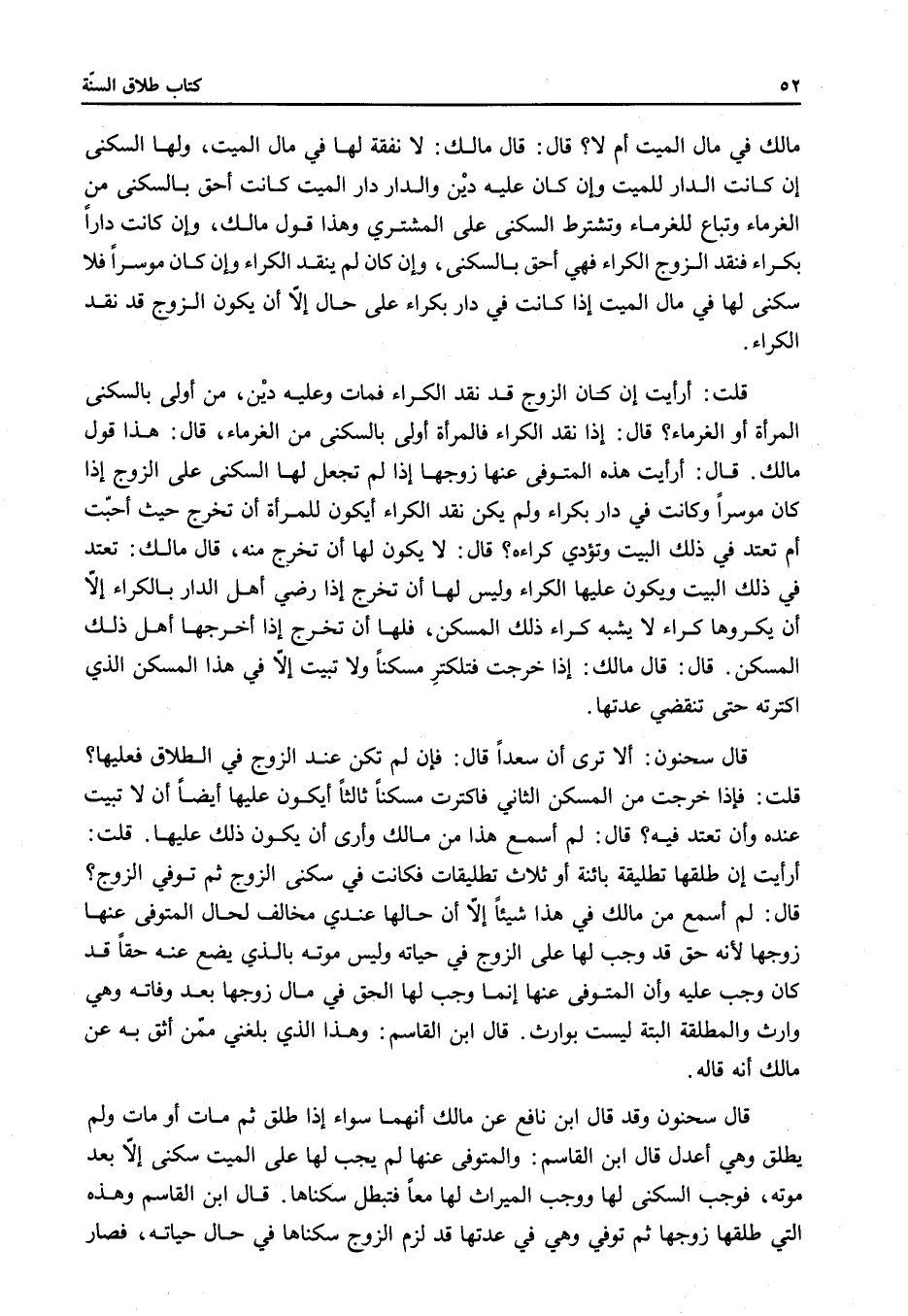 قَالَ سَحْنُونٌ: أَلَا تَرَى أَنَّ سَعْدًا قَالَ: فَإِنْ لَمْ تَكُنْ عِنْدَ الزَّوْجِ فِي الطَّلَاقِ فَعَلَيْهَا؟