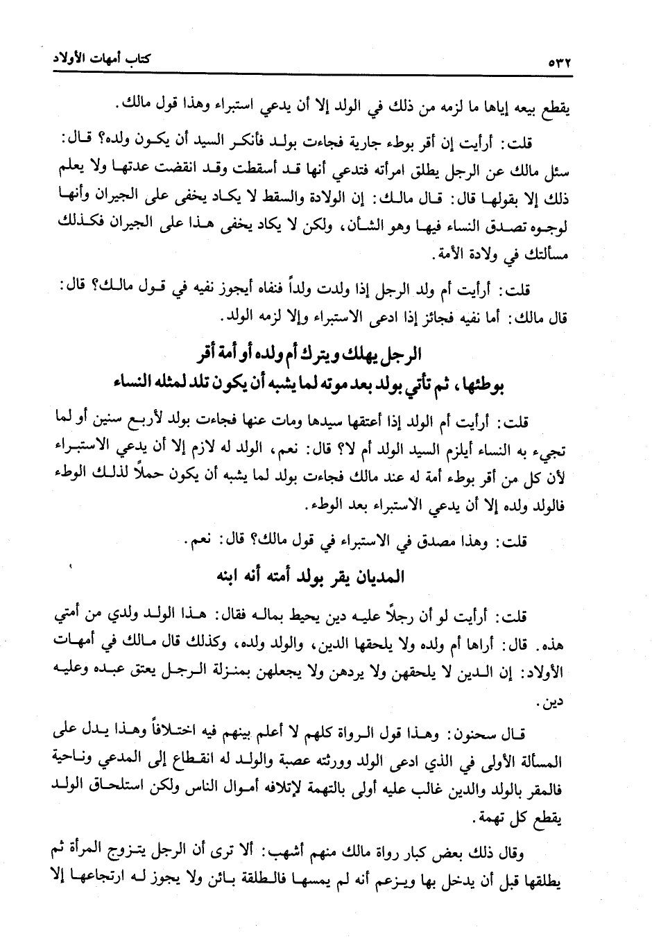 ُ قُلْتُ: أَرَأَيْتَ لَوْ أَنَّ رَجُلًا عَلَيْهِ دَيْنٌ يُحِيطُ بِمَالِهِ فَقَالَ: هَذَا الْوَلَدُ وَلَدِي مِنْ أَمَتِي هَذِهِ. قَالَ: أَرَاهَا أُمَّ وَلَدِهِ وَلَا يَلْحَقُهَا الدَّيْنُ، وَالْوَلَدُ وَلَدُهُ، وَكَذَلِكَ قَالَ مَالِكٌ فِي أُمَّهَاتِ الْأَوْلَادِ: إنَّ الدَّيْنَ لَا يَلْحَقُهُنَّ وَلَا يَرُدُّهُنَّ وَلَا يَجْعَلُهُنَّ بِمَنْزِلَةِ الرَّجُلِ يُعْتِقُ عَبْدَهُ وَعَلَيْهِ دَيْنٌ.
