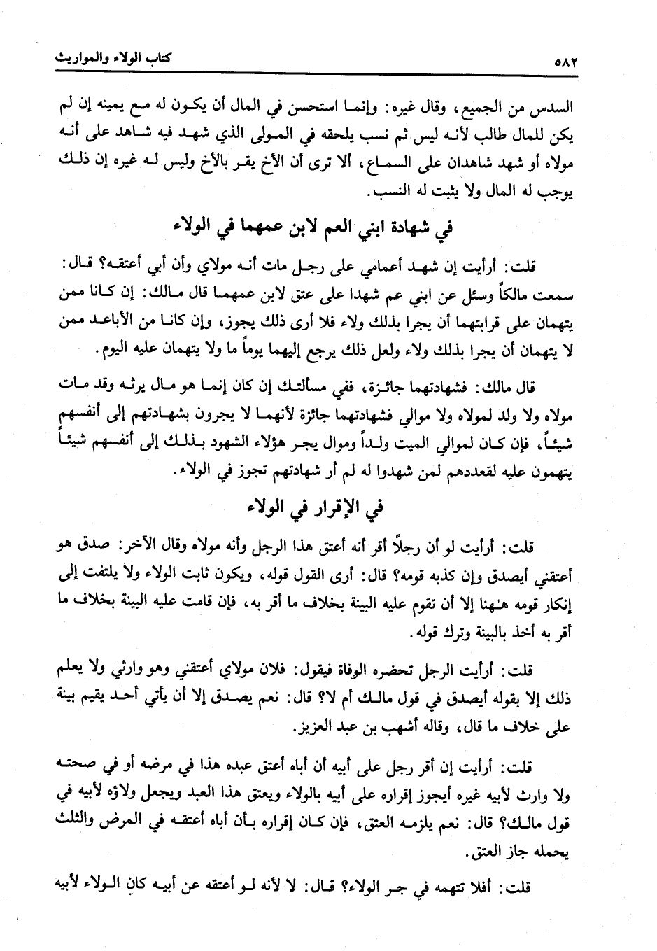 فِي شَهَادَةِ ابْنَيْ الْعَمِّ لِابْنِ عَمِّهِمَا فِي الْوَلَاءِ قُلْتُ: أَرَأَيْتَ إنْ شَهِدَ أَعْمَامِي عَلَى رَجُلٍ مَاتَ أَنَّهُ مَوْلَايَ وَأَنَّ أَبِي أَعْتَقَهُ؟