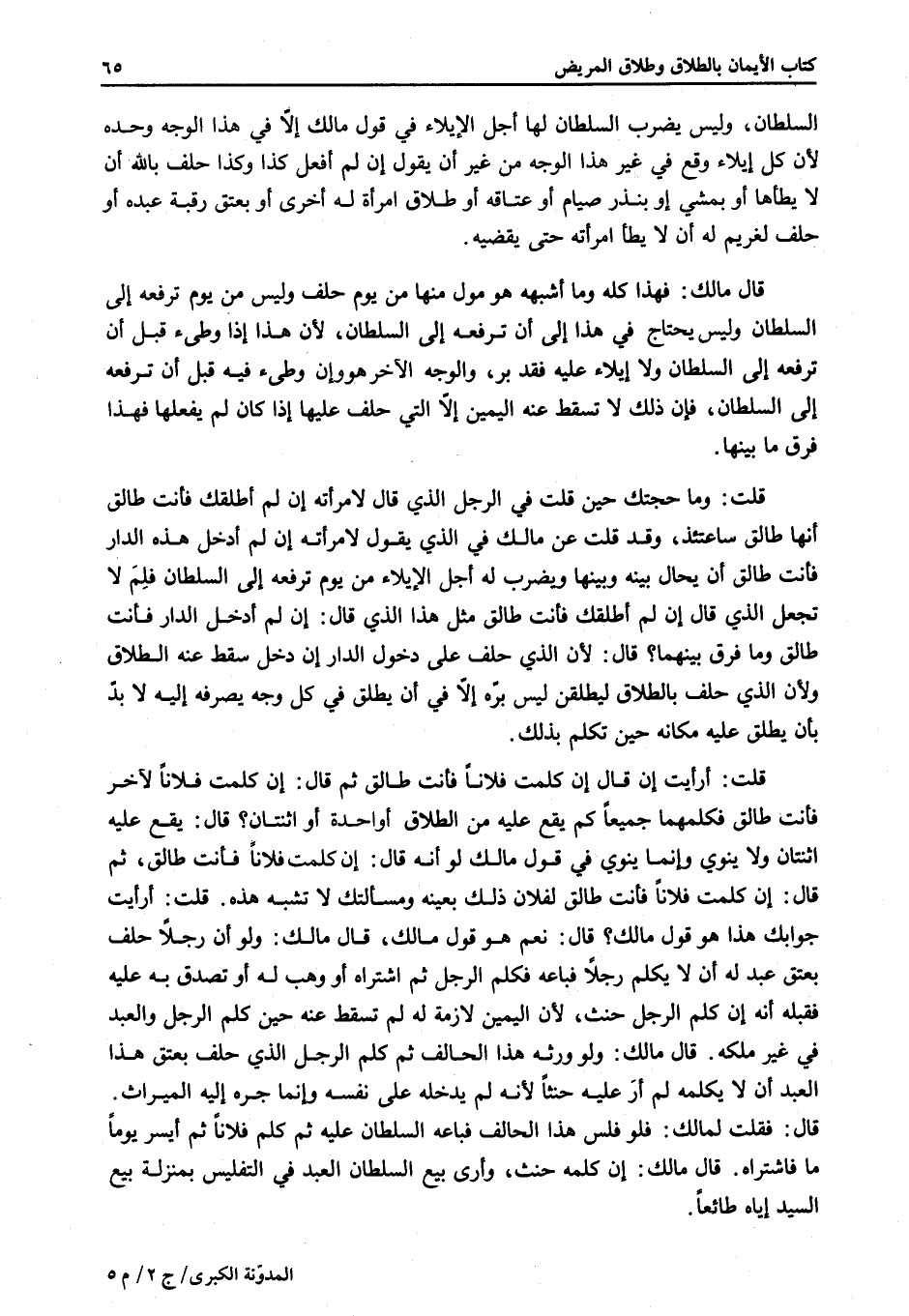 قَالَ: فَقُلْتُ لِمَالِكٍ: فَلَوْ فَلِسَ هَذَا الْحَالِفُ فَبَاعَهُ السُّلْطَانُ عَلَيْهِ ثُمَّ كَلَّمَ فُلَانًا ثُمَّ أَيْسَرَ يَوْمًا مَا فَاشْتَرَاهُ قَالَ مَالِكٌ إنْ كَلَّمَهُ حَنِثَ، وَأَرَى بَيْعَ السُّلْطَانِ الْعَبْدَ فِي التَّفْلِيسِ بِمَنْزِلَةِ بَيْعِ السَّيِّدِ إيَّاهُ طَائِعًا