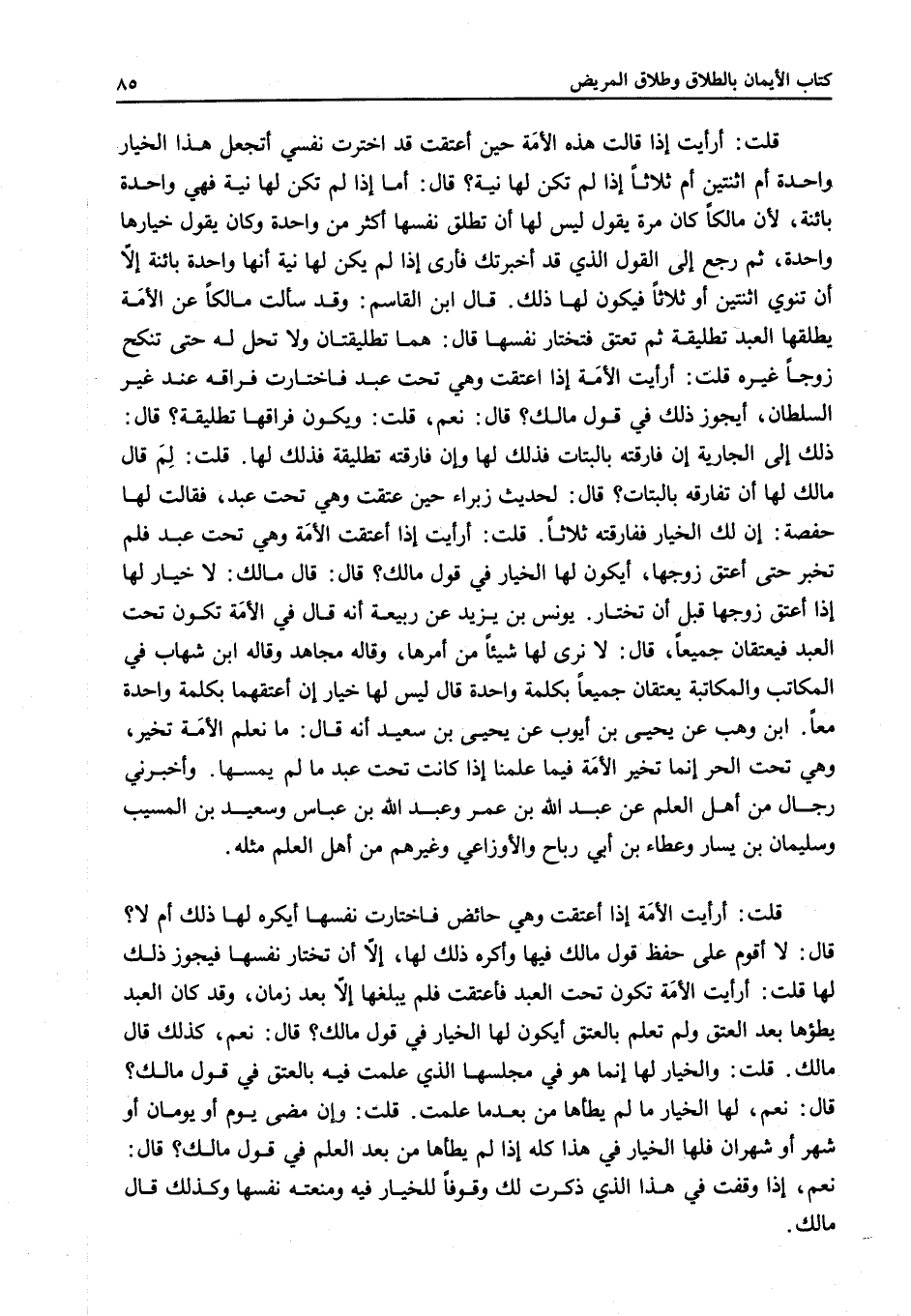 قَالَ: قَالَ مَالِكٌ: لَا خِيَارَ لَهَا إذَا أُعْتِقَ زَوْجُهَا قَبْلَ أَنْ تَخْتَارَ يُونُسُ بْنُ يَزِيدَ عَنْ رَبِيعَةَ أَنَّهُ قَالَ فِي الْأَمَةِ تَكُونُ تَحْتَ الْعَبْدِ فَيُعْتَقَانِ جَمِيعًا، قَالَ: لَا نَرَى لَهَا شَيْئًا مِنْ أَمْرِهَا، وَقَالَهُ مُجَاهِدٌ وَقَالَهُ ابْنُ شِهَابٍ فِي الْمُكَاتَبِ وَالْمُكَاتَبَةِ يُعْتَقَانِ جَمِيعًا بِكَلِمَةٍ وَاحِدَةٍ قَالَ: لَيْسَ لَهَا خِيَارٌ إنْ أَعْتَقَهُمَا بِكَلِمَةٍ وَاحِدَةٍ مَعًا ابْنُ وَهْبٍ عَنْ يَحْيَى بْنِ أَيُّوبَ عَنْ يَحْيَى بْنِ سَعِيدٍ أَنَّهُ قَالَ: مَا نَعْلَمُ الْأَمَةَ تُخَيَّرُ، وَهِيَ تَحْتَ الْحُرِّ إنَّمَا تُخَيَّرُ الْأَمَةُ فِيمَا عَلِمْنَا إذَا كَانَتْ تَحْتَ عَبْدٍ مَا لَمْ يَمَسَّهَا وَأَخْبَرَنِي رِجَالٌ مِنْ أَهْلِ الْعِلْمِ عَنْ عَبْدِ اللَّهِ بْنِ عُمَرَ وَعَبْدِ اللَّهِ بْنِ عَبَّاسٍ وَسَعِيدِ بْنِ الْمُسَيِّبِ وَسُلَيْمَانَ بْنِ يَسَارٍ وَعَطَاءِ بْنِ أَبِي رَبَاحٍ وَالْأَوْزَاعِيِّ وَغَيْرِهِمْ مِنْ أَهْلِ الْعِلْمِ مِثْلَهُ