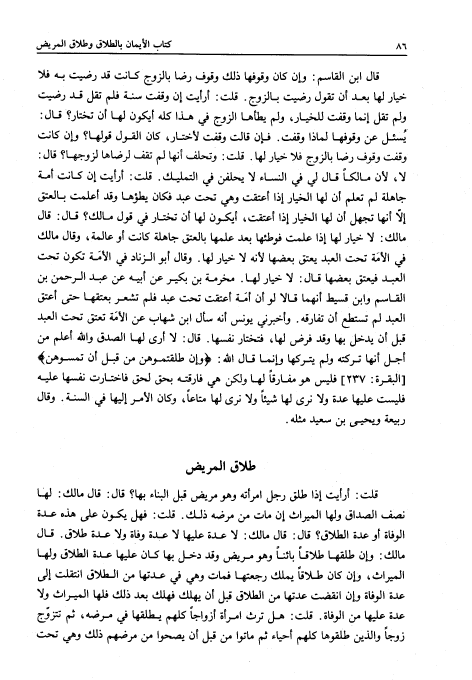 قَالَ: قَالَ مَالِكٌ: لَا عِدَّةَ عَلَيْهَا لَا عِدَّةَ وَفَاةٍ وَلَا عِدَّةَ طَلَاقٍ قَالَ مَالِكٌ: وَإِنْ طَلَّقَهَا طَلَاقًا بَائِنًا وَهُوَ مَرِيضٌ وَقَدْ دَخَلَ بِهَا كَانَ عَلَيْهَا عِدَّةُ الطَّلَاقِ وَلَهَا الْمِيرَاثُ، وَإِنْ كَانَ طَلَاقًا يَمْلِكُ رَجْعَتَهَا فَمَاتَ وَهِيَ فِي عِدَّتِهَا مِنْ الطَّلَاقِ انْتَقَلَتْ إلَى عِدَّةِ الْوَفَاةِ وَإِنْ انْقَضَتْ عِدَّتُهَا مِنْ الطَّلَاقِ قَبْلَ أَنْ يَهْلَكَ فَهَلَكَ بَعْدَ ذَلِكَ فَلَهَا الْمِيرَاثُ وَلَا عِدَّةَ عَلَيْهَا مِنْ الْوَفَاةِ قُلْتُ: هَلْ تَرِثُ امْرَأَةٌ أَزْوَاجًا كُلَّهُمْ يُطَلِّقُهَا فِي مَرَضِهِ، ثُمَّ تَتَزَوَّجُ زَوْجًا وَاَلَّذِينَ طَلَّقُوهَا كُلُّهُمْ أَحْيَاءٌ ثُمَّ مَاتُوا مِنْ قَبْلِ أَنْ يَصِحُّوا مِنْ مَرَضِهِمْ ذَلِكَ وَهِيَ تَحْتَ
