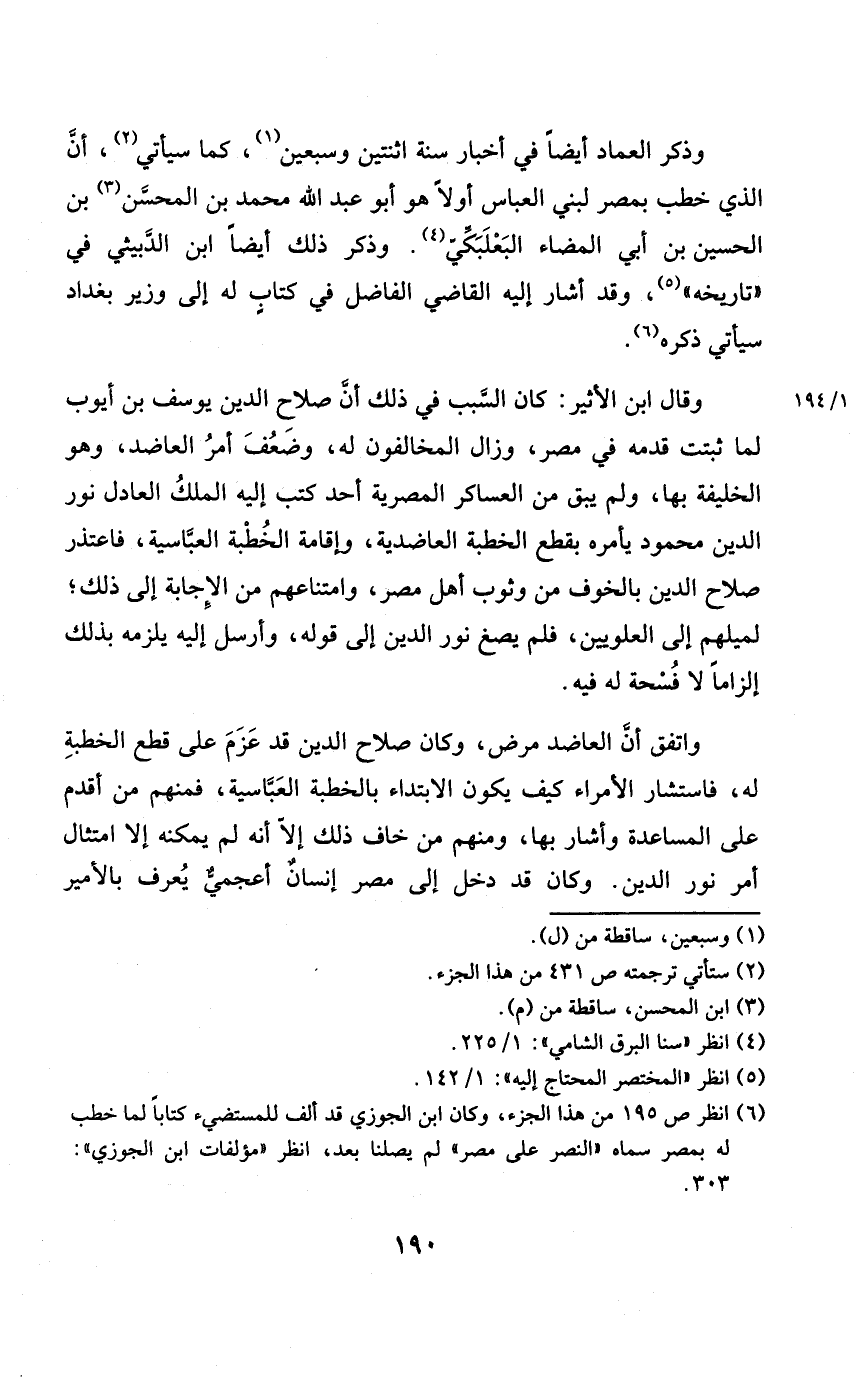وَذكر الْعِمَاد أَيْضا فِي أَخْبَار سنة اثْنَتَيْنِ وَسبعين كَمَا سَيَأْتِي أنّ الَّذِي خطب بِمصْر لبني الْعَبَّاس أَولا هُوَ أَبُو عبد الله مُحَمَّد بن المحسن بن الْحُسَيْن بن أبي المضاء البعلبكي وَذكر ذَلِك أَيْضا ابْن الدبيثي فِي تَارِيخه وَقد أَشَارَ إِلَيْهِ القَاضِي الْفَاضِل فِي كتاب لَهُ إِلَى وَزِير بَغْدَاد سَيَأْتِي ذكره