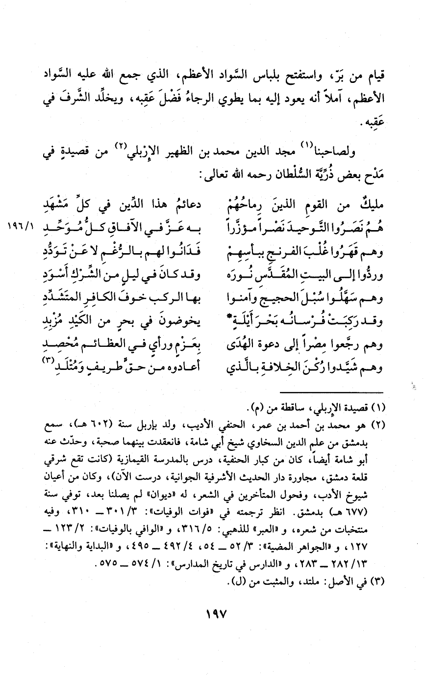 ولصاحبنا مجد الدّين مُحَمَّد بن الظهير الإربلي من قصيدة فِي مدح بعض ذُرِّيَّة السُّلْطَان رَحمَه الله تَعَالَى