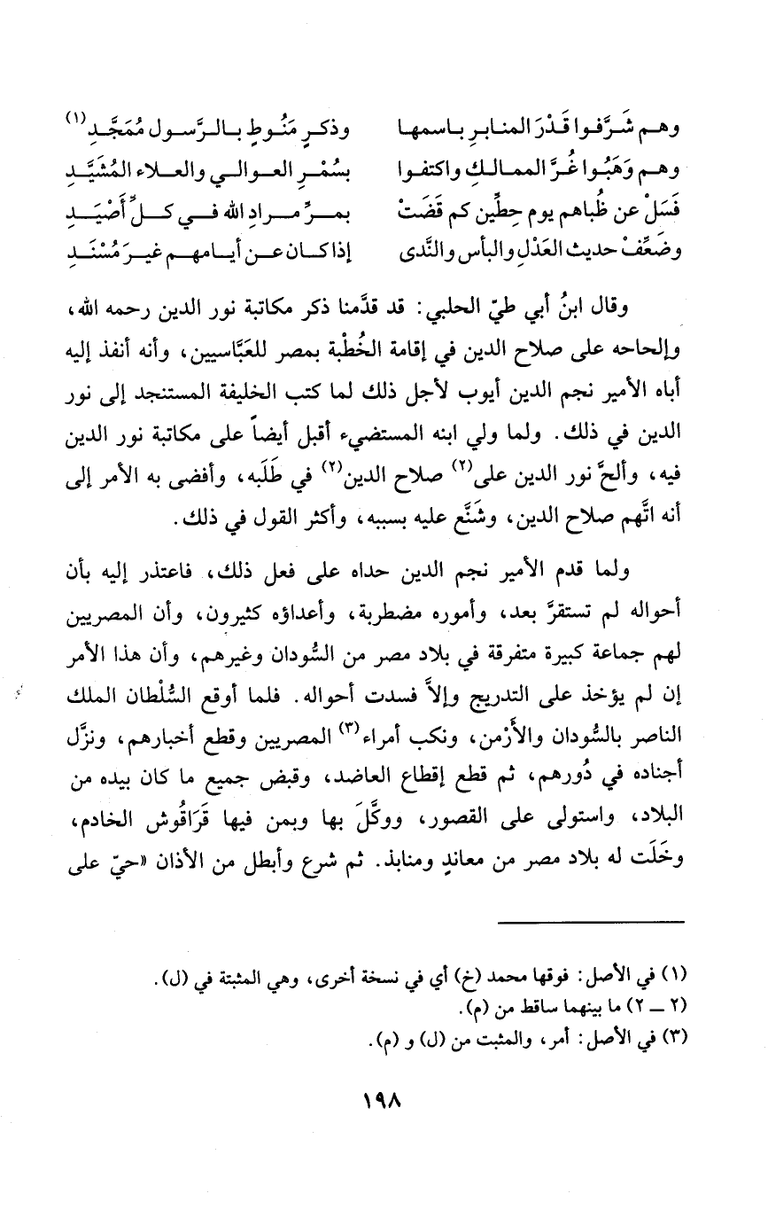 وَقَالَ ابْن أبي طيّ الْحلَبِي قد قدمنَا ذكر مُكَاتبَة نور الدّين رَحمَه الله وإلحاحه على صَلَاح الدّين فِي إِقَامَة الْخطْبَة بِمصْر للعباسيين وَأَنه أنفذ إِلَيْهِ أَبَاهُ الْأَمِير نجم الدّين أَيُّوب لأجل ذَلِك لما كتب الْخَلِيفَة المستنجد إِلَى نور الدّين فِي ذَلِك وَلما ولي ابْنه المستضيء أقبل أَيْضا على مُكَاتبَة نور الدّين فِيهِ وألح نور الدّين على صَلَاح الدّين فِي طلبه وأفضى بِهِ الْأَمر إِلَى أَنه اتهمَ صَلَاح الدّين وشنع عَلَيْهِ بِسَبَبِهِ وَأكْثر القَوْل فِي ذَلِك