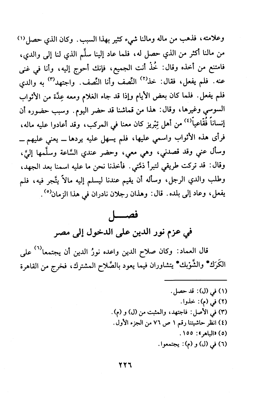 فصل فِي عزم نور الدّين على الدُّخُول إِلَى مصر