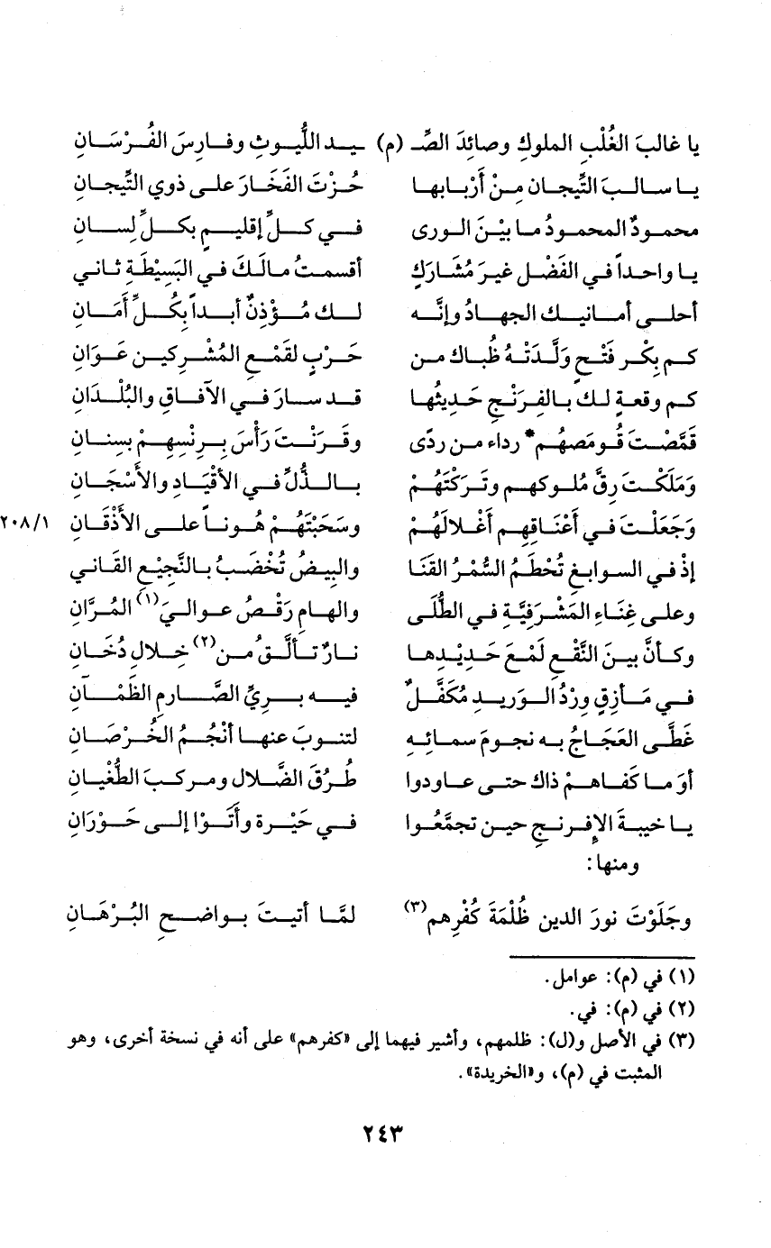 (كم وقعةٍ لَك بالفرنج حَدِيثهَا ... قد سَار فِي الْآفَاق والبلدان)