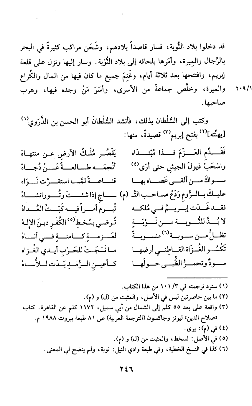 وَكتب إِلَى السُّلْطَان بذلك فَأَنْشد السُّلْطَان أَبُو الْحسن بن الذروي يهنئه بِفَتْح إبريم قصيدة مِنْهَا