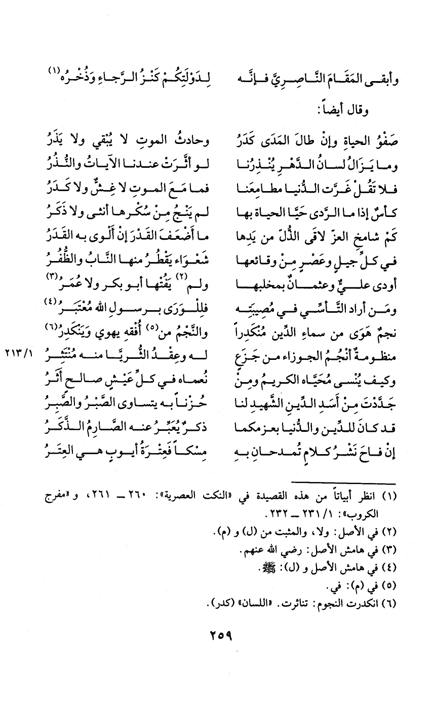 (وَأبقى الْمقَام الناصريّ فَإِنَّهُ ... لدولتكم كنز الرّجاء وذخره)