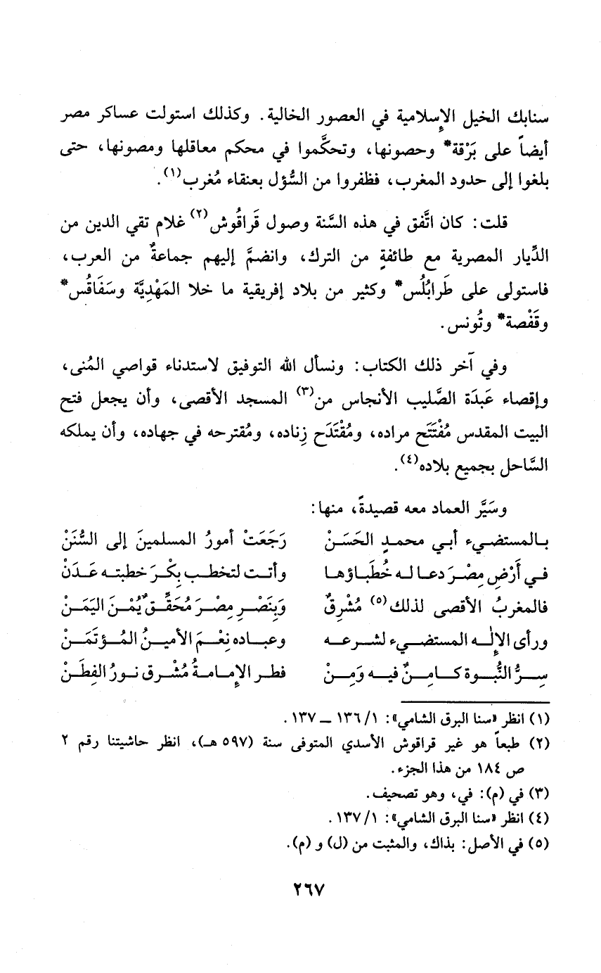 سنابك الْخَيل الإسلامية فِي العصور الخالية وَكَذَلِكَ استولت عَسَاكِر مصر أَيْضا على برقة وحصونها وتحكموا فِي مُحكم معاقلها ومصونها حَتَّى بلغُوا إِلَى حُدُود الْمغرب فظفروا من السؤل بعنقاء مغرب