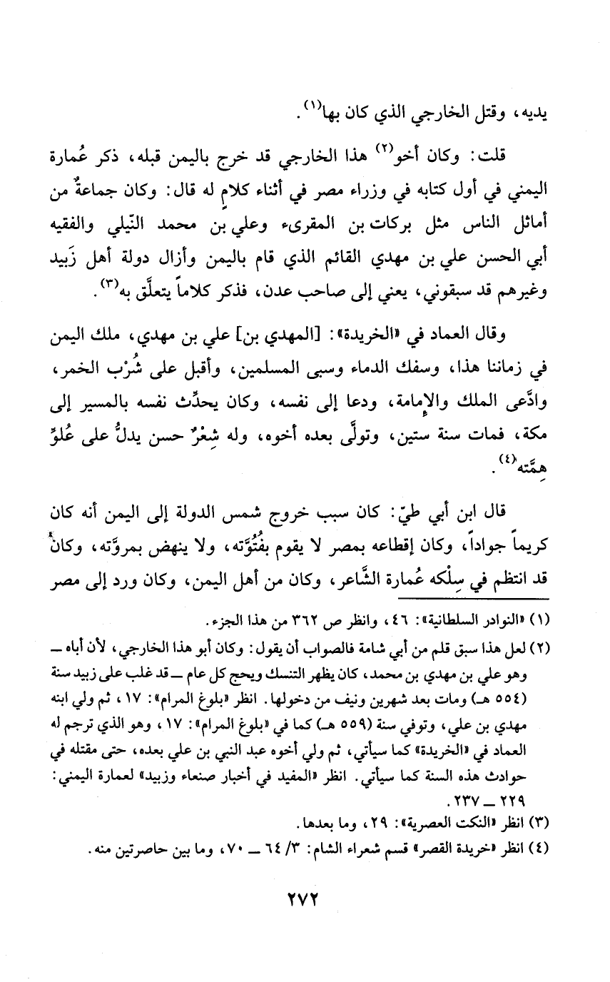 وَقلت وَكَانَ أَخُو هَذَا الْخَارِجِي قد خرج بِالْيمن قبله ذكر عمَارَة اليمني فِي أول كِتَابه فِي وزراء مصر فِي أثْنَاء كَلَام لَهُ قَالَ وَكَانَ جمَاعَة من أماثل النَّاس مثل بَرَكَات بن المقرئ وَعلي بن مُحَمَّد النيلي والفقيه أبي الْحسن عَليّ بن مهْدي الْقَائِم الَّذِي قَامَ بِالْيمن وأزال دولة أهل زبيد وَغَيرهم قد سبقوني يَعْنِي إِلَى صَاحب عدن فَذكر كلَاما يتَعَلَّق بِهِ