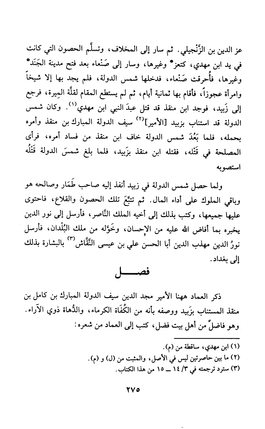 ذكر الْعِمَاد هَهُنَا الْأَمِير مجد الدّين سيف الدولة الْمُبَارك بن كَامِل بن منقذ المستناب بزبيد وَوَصفه بِأَنَّهُ من الكفاة الكرماء والدّهاة ذوى الآراء وَهُوَ فَاضل من أهل بَيت فضل كتب إِلَى الْعِمَاد من شعره