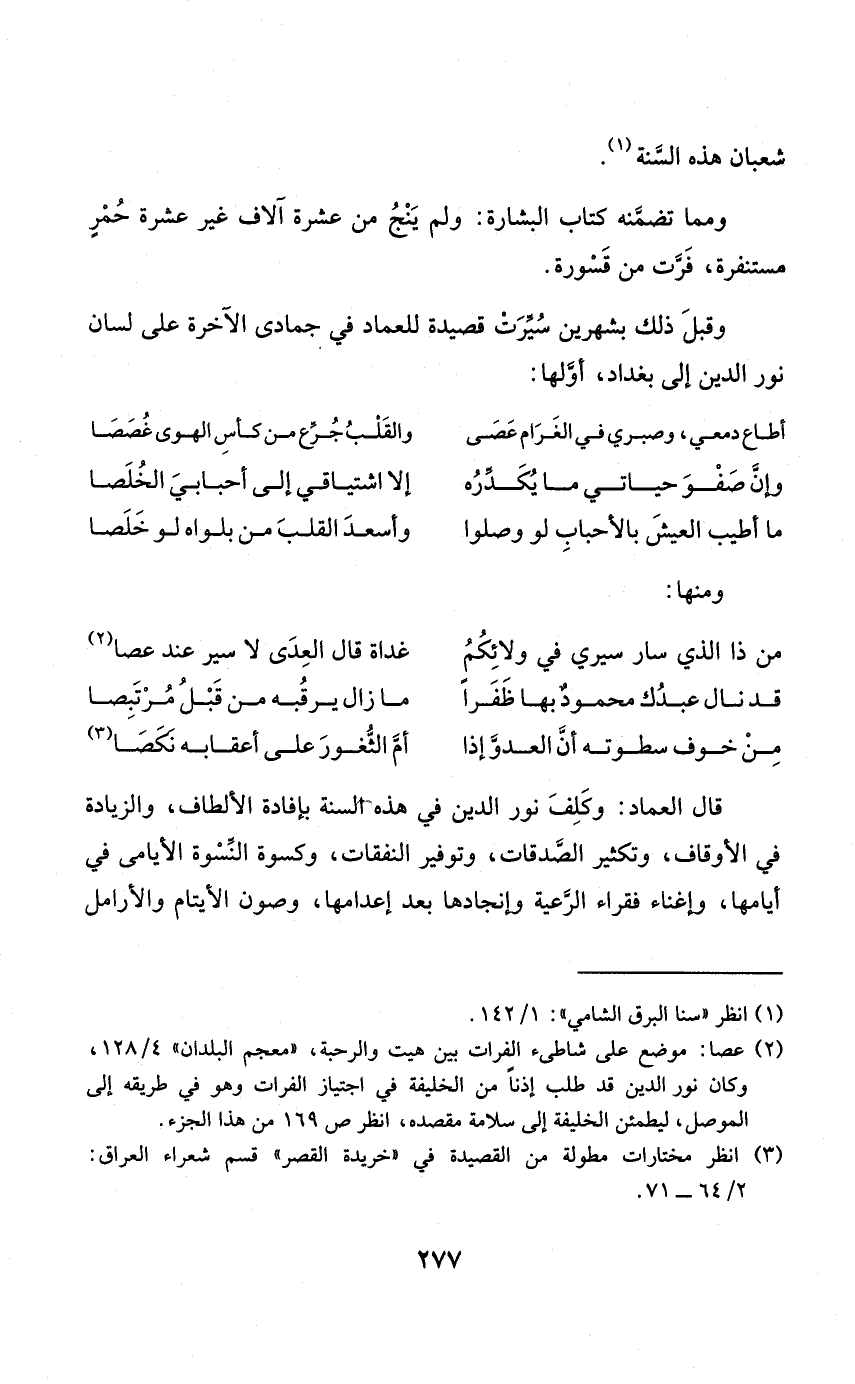 وقبِل ذَلِك بشهرين سيّرت قصيدة للعماد فِي جُمَادَى الْآخِرَة على لِسَان نور الدّين إِلَى بَغْدَاد أوّلها