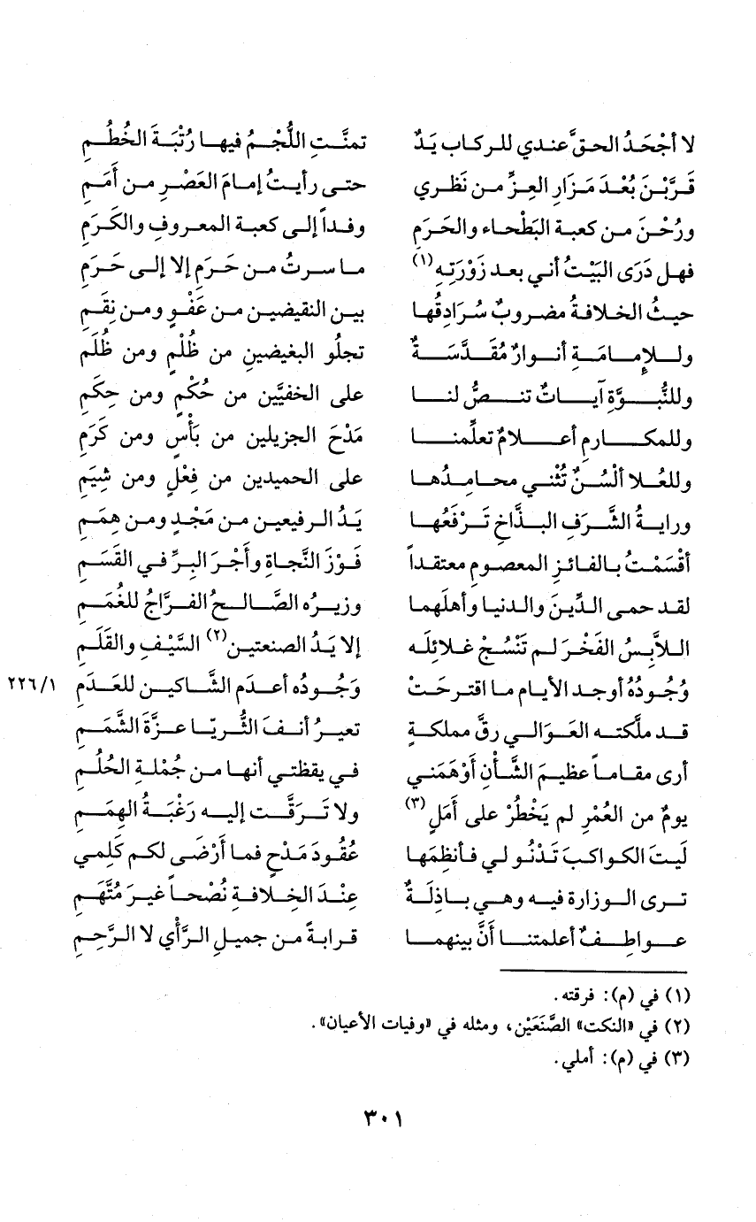 (قرّبن بعد مَزَار الْعِزّ من نَظَرِي ... حَتَّى رَأَيْت إِمَام الْعَصْر من أُمَم)