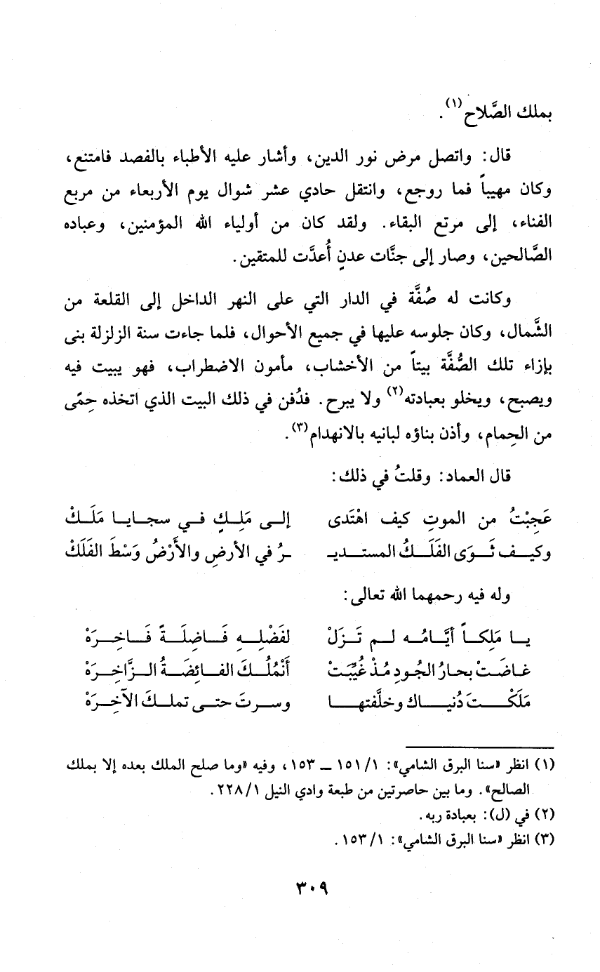 قَالَ واتصل مرض نور الدّين وَأَشَارَ عَلَيْهِ الْأَطِبَّاء بالفصد فَامْتنعَ وَكَانَ مهيبا فَمَا رُوجِعَ وانتقل حادي عشر شَوَّال يَوْم الْأَرْبَعَاء من مربع الفناء إِلَى مرتع الْبَقَاء وَلَقَد كَانَ من أَوْلِيَاء الله الْمُؤمنِينَ وعباده الصَّالِحين وَصَارَ إِلَى جنَّات عدن أعدت لِلْمُتقين