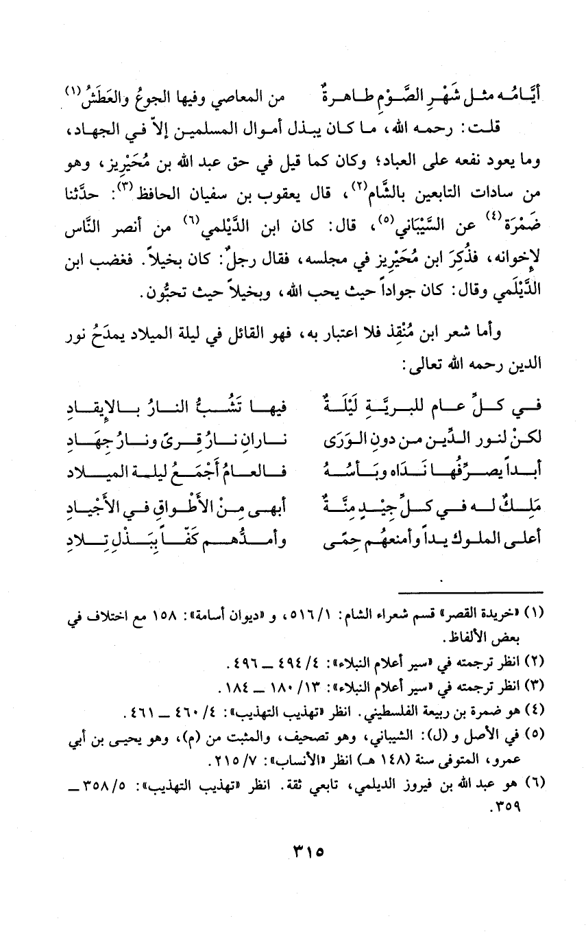قلت رَحمَه الله مَا كَانَ يبْذل أَمْوَال الْمُسلمين إِلَّا فِي الْجِهَاد وَمَا يعود نَفعه على الْعباد وَكَانَ كَمَا قيل فِي حق عبد الله بن محيريز وَهُوَ من سَادَات التَّابِعين بِالشَّام قَالَ يَعْقُوب بن سُفْيَان الْحَافِظ حَدثنَا ضَمرَة عَن السيباني قَالَ كَانَ ابْن الديلمي من أنْصر النَّاس لأخوانه فَذكر ابْن محيريز فِي مَجْلِسه فَقَالَ رجل كَانَ بَخِيلًا فَغَضب ابْن الدّيلمي وَقَالَ كَانَ جوادا حَيْثُ يحب الله وبخيلا حَيْثُ تحبون