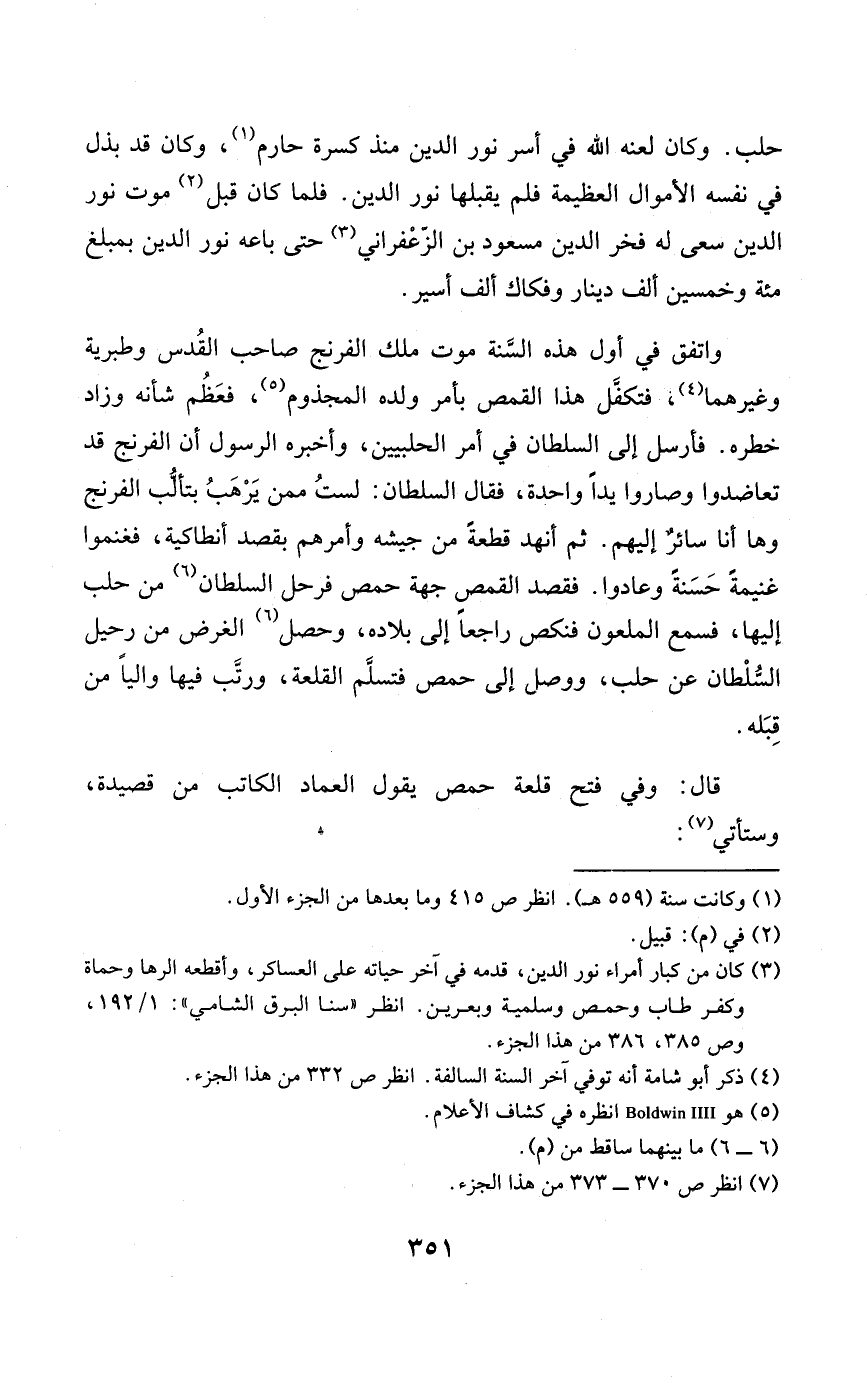 قَالَ وَفِي فتح قلعة حمص يَقُول الْعِمَاد الْكَاتِب من قصيدة وَسَتَأْتِي