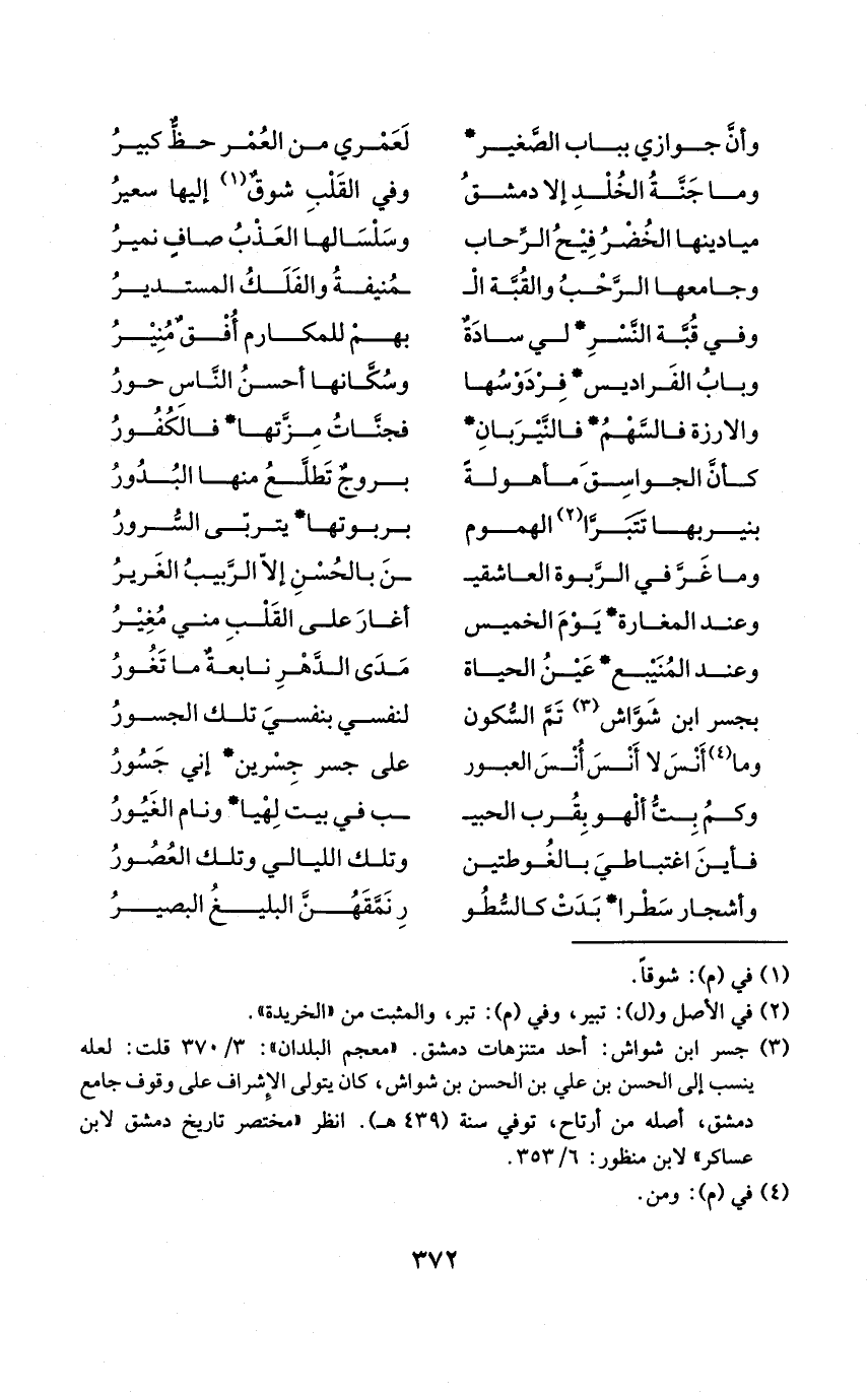 (وَمَا جنَّة الْخلد إِلَّا دمشق ... وَفِي الْقلب شوق إِلَيْهَا سعير)