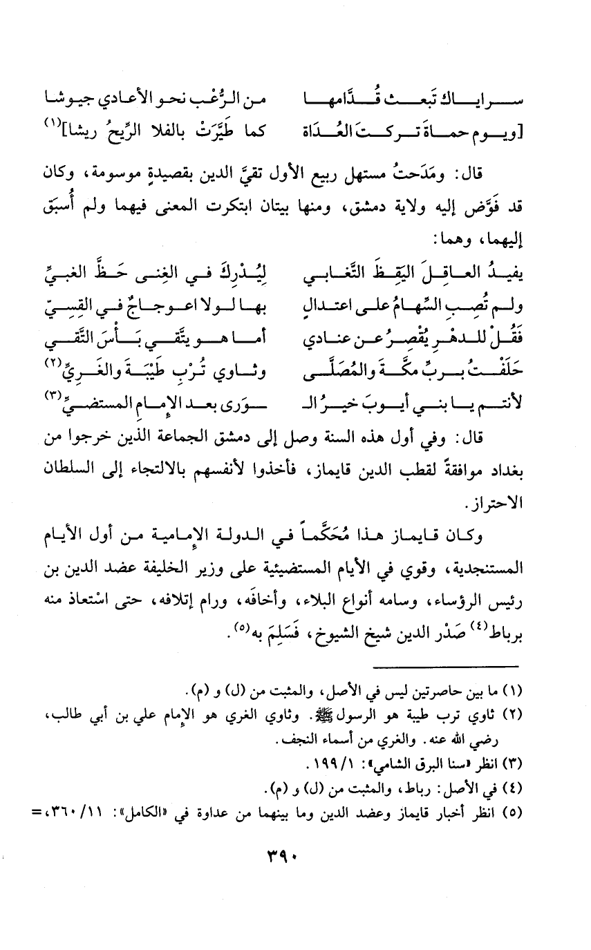 قَالَ وَفِي أول هَذِه السّنة وصل إِلَى دمشق الْجَمَاعَة الَّذين خَرجُوا من بَغْدَاد مُوَافقَة لقطب الدّين قايماز فَأخذُوا لأَنْفُسِهِمْ بالالتجاء إِلَى السُّلْطَان الِاحْتِرَاز