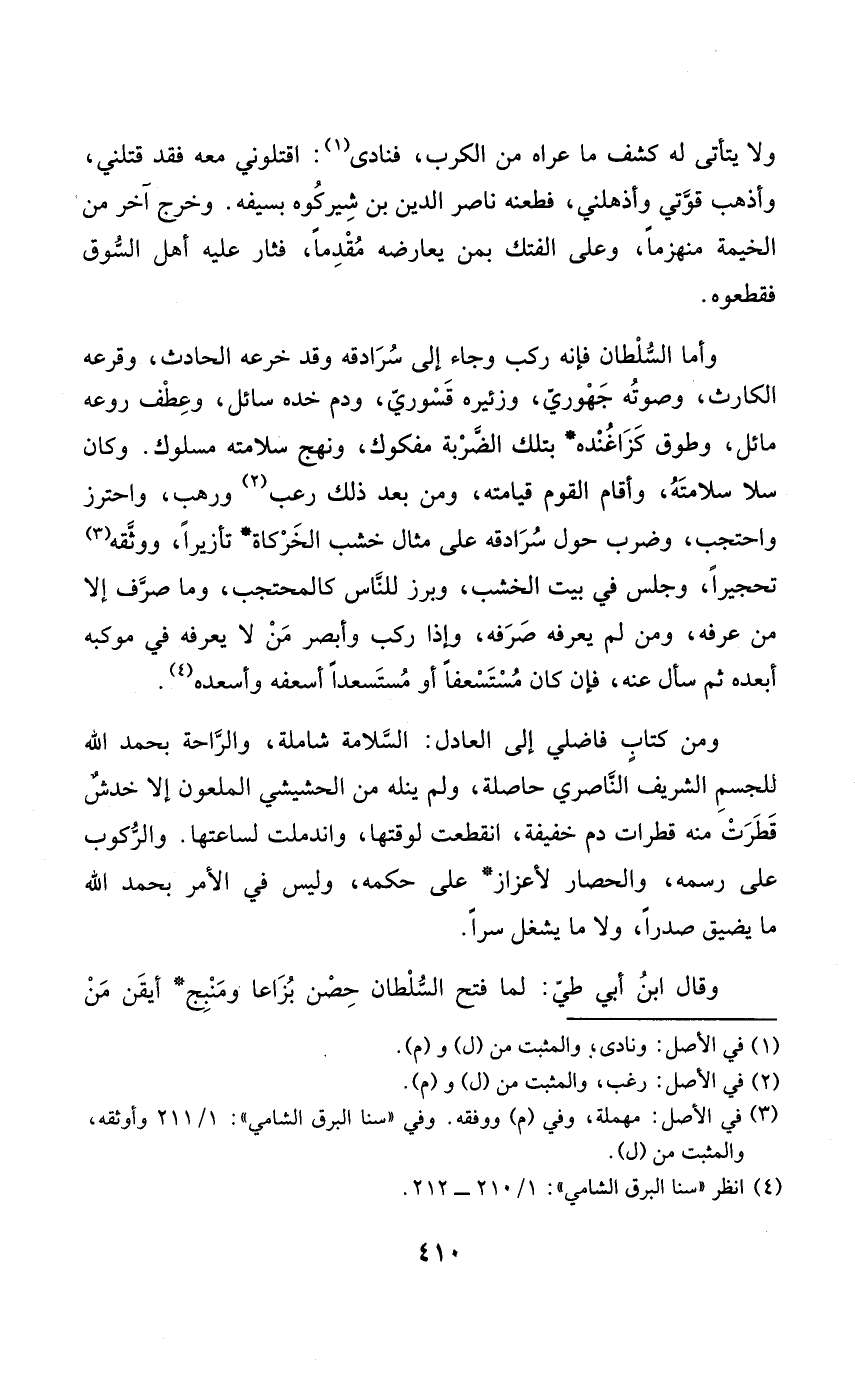 وَمن كتاب فاضلي إِلَى الْعَادِل السَّلامَة شَامِلَة والرّاحة بِحَمْد الله للجسم الشريف الناصري حَاصِلَة وَلم ينله من الحشيشي الملعون إِلَّا خدش قطرت مِنْهُ قطرات دم خَفِيفَة انْقَطَعت لوَقْتهَا واندملت لساعتها وَالرُّكُوب على رسمه والحصار لأعزاز على حكمه وَلَيْسَ فِي الْأَمر بِحَمْد الله مَا يضيق صَدرا وَلَا مَا يشغل سرا